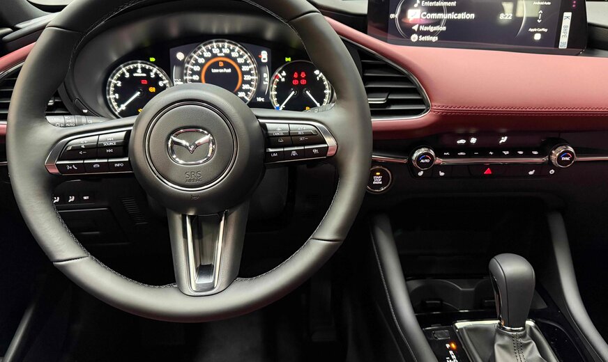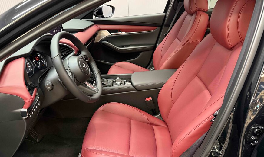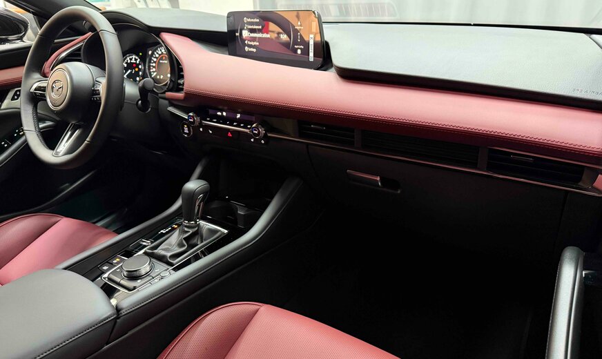 Mazda 3 !!! NOTRE STOCK COMPLET SUR https://deltgen.lu/deltgen-cars !!! VOITURE DISPONIBLE ET LIVRABLE DE SUITE Prix catalogue: 36782€ (Remise du mois 3000€ = Prix de vente 33782€) valable jusqu'au 30/04/2026 Financement à partir de 2.99% Mazda 3 Finition : Takumi EXTÉRIEUR - Phares avant LED avec fonction antibrouillard intégrée et lave-phares - Phares avant LED intelligents (AHL) avec fonction antibrouillard intégrée et lave-phares - Feux diurnes halogènes - Feux diurnes LED - Signature LED avant et arrière - Phares arrière LED - Rétroviseurs en couleur carrosserie réglables électriquement, chauffants et rabattables automatiquement - Rétroviseurs extérieurs avec fonction mémoire et mode parking - Rétroviseur extérieur côté conducteur avec fonction anti-éblouissement automatique - Vitres surteintées à l'arrière - Aide au stationnement arrière - Aide au stationnement avant - Caméra 360° (AVM) - Capteur de pénombre - Capteur de pluie - Verrouillage centralisé avec clef intelligente - Jantes en alliage 18 'Black' avec pneus 215/45R18 (uniquement sur Hatchback) - Poignées de portes couleur carrosserie - Boucliers avant et arrière couleur de carrosserie - Partie inférieure du bouclier avant noire (uniquement sur Hatchback) - Calandre avant en 'Piano Black' avec insert en 'Dark metallic' (uniquement sur Hatchback) - Becquet arrière (uniquement sur Hatchback) - Montants des portes en 'Piano Black' - Vitres latérales avec insert inférieur chromé (uniquement sur Hatchback) - Becquet arrière en 'Piano Black' - Essuie-glaces avec buses de lave-glace intégrées et élément chauffant - Fonction Coming/Leaving home INTÉRIEUR - Climatisation automatique bi-zone - Ordinateur de bord - Affichage tête haute en couleur avec projection sur pare-brise (ADD) - Vitres électriques avant et arrière - Rétroviseur intérieur avec fonction anti-éblouissement automatique - Rétroviseur intérieur sans cadre avec fonction anti-éblouissement automatique - Volant réglable en hauteur et en profondeur - Volant et pommeau du levier de vitesses gainés de cuir - Commandes audio intégrées au volant - Volant avec inserts chromés - Palettes au volant (uniquement sur BVA) - Bouton de démarrage du moteur et poignée de boîte à gants en chromés - Frein à main électrique (EPB) - Siège passager réglable manuellement (8 voies) - Siège conducteur réglable électriquement (8 voies + lombaire) avec fonction mémoire couplée à l'affichage tête haute - Sièges avant chauffants - Volant chauffant - Banquette arrière rabattable 60/40 - Revêtement de la console centrale et de l'accoudoir central en similicuir avec surpiqûres contrastantes - Revêtement de l'accoudoir des panneaux de porte et panneaux de porte en similicuir avec surpiqûres contrastantes - Partie supérieure du tableau de bord noir avec surpiqûres contrastantes - Revêtement des sièges en cuir avec surpiqûres contrastantes - Ciel de toit noir (uniquement sur Hatchback) CONNECTIVITÉ ET INFODIVERTISSEMENT - Radio AM/FM, DAB, système audio Bose® avec 12 haut-parleurs - HMI Commander et Mazda Connect avec écran couleur 10,25 - Bluetooth® - Apple Carplay® en Android Auto®* sans fil - Système de navigation (7 ans de mise à jour gratuite des cartes) - Commande vocale Alexa - Services Mazda connectés - Prises USB-C (x2) et prise 12v - Chargeur sans fil Qi - Tableau d'instrumentation avec écran couleur 7 TFT SÉCURITÉ - Régulateur de vitesse adaptatif (MRCC) avec fonction stop&go (fonction stop&go sur BVA uniquement) - Assistance intelligente à la vitesse (ISA) - Assistance au freinage en milieu urbain (SCBS) - Assistance au freinage en milieu urbain à l'arrière (SCBS-R) - Assistance intelligente au freinage (SBS) - Système de suivi de voie actif (LKA) - Système de surveillance d'angles morts (BSM) - Système de surveillance d'angles morts en marche avant (FCTA) - Système de surveillance d'angles morts en marche arrière (RCTA) - Système d'alerte anti-fatigue pour le conducteur (DAA) - Système d'alerte anti-fatigue pour le conducteur avec caméra (DAA) - Système de reconnaissance des panneaux de circulation (TSR) - Gestion des feux de route (HBC) - Intelligente fileassistent (CTS) - ABS + EBD (répartiteur électronique de la force de freinage) et EBA (assistance au freinage d'urgence) - DSC (contrôle dynamique de stabilité) avec TCS (système antipatinage) - Deux airbags frontaux, airbags latéraux à l'avant, airbags rideaux avant et arrière et airbag genou côté conducteur - Système de contrôle individuel de la pression des pneus (TPMS-i) - Aide au démarrage en côte (HLA) avec fonction auto-hold - Verrouillage automatique des portes - Système d'alarme - Système d'appel d'urgence e-Call Garantie usine 6 ans ou 150.000km Assistance Mazda Frais de mise en route (275€) et de transport (599€) non inclus dans le prix affiché Pour plus de renseignement ou un essai n'hésitez p ...