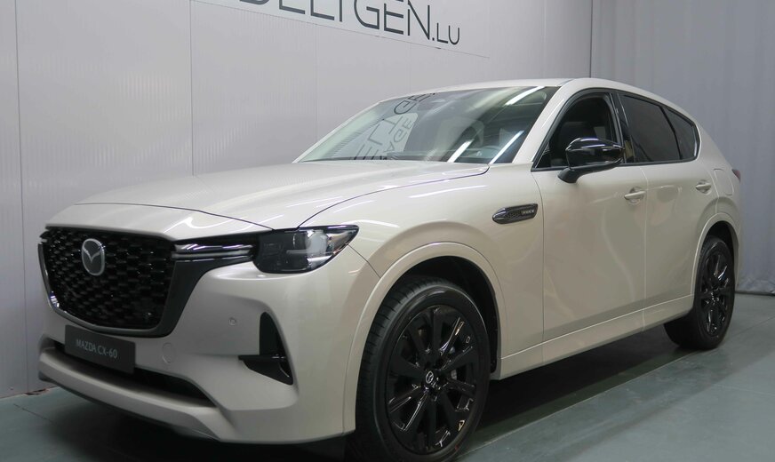Mazda CX-60 !!! NOTRE STOCK COMPLET SUR https://deltgen.lu/deltgen-cars !!! !!!CONDITIONS FESTIVAL PROLONGEES!!! VOITURE DISPONIBLE ET LIVRABLE DE SUITE Prix catalogue: 66593€ (Remise du mois 9000€ = Prix de vente 57593€) valable jusqu'au 28/02/2026 Financement à partir de 2.99% Mazda CX60 Finition : Homura Plus EXTÉRIEUR - Phares avant LED intelligents (AHL) avec fonction antibrouillard intégrée et lave-phares - Gestion des feux de route (HBC) - Phares arrière LED - Signature LED avant et arrière - Rétroviseurs en 'Piano Black' réglables électriquement, chauffants et rabattables automatiquement - Rétroviseurs extérieurs avec fonction anti-éblouissement - Rétroviseurs extérieurs avec fonction mémoire - Aide au stationnement arrière - Aide au stationnement avant - Caméra de recul - Caméra 360° avec fonction See through - Capteur de pluie et de pénombre - Essuie-glaces avant chauffants - Essuie-glaces avec buse de lave-glace intégrée - Verrouillage centralisé avec clef intelligente - Jantes en alliage 20 'Black' avec pneus 235/50R20 - Poignées de portes couleur carrosserie - Boucliers avant et arrière couleur carrosserie avec protection à l'arrière en plastique noir - Inserts pare-chocs arrière noirs - Grille de calandre type nid d'abeille en 'Piano Black' et contour noir - Passages de roues et bas de caisse en couleur carrosserie - Badge 'PHEV' noir sur les ailes avant - Montants des portes en 'Piano Black' - Vitres surteintées à l'arrière - Moulure des vitres latérales en noir - Becquet arrière en couleur carrosserie - Hayon électrique avec ouverture automatique - Toit ouvrant électrique panoramique INTÉRIEUR - Climatisation automatique bi-zone - Ouïes de ventilation à l'arrière - Affichage tête haute en couleur avec projection sur pare-brise (ADD) - Vitres électriques avant et arrière - Volant réglable en hauteur et en profondeur - Volant et pommeau du levier de vitesses gainés de cuir - Commandes audio intégrées au volant - Palettes au volant - Volant chauffant - Volant réglable électriquement - Fonction accès facile pour le conducteur - Rétroviseur intérieur sans cadre avec fonction anti-éblouissement automatique - Sièges conducteur et passager réglables électriquement (8 voies + lombaire) - Réglage automatique de la position de conduite par reconnaissance faciale (siège conducteur, affichage tête haute et rétroviseurs extérieurs) - Assistant de position de conduite - Sièges avant chauffants - Sièges avant ventilés - Banquette arrière chauffante - Accoudoir centrale avant - Accoudoir central avant éclairé - Banquette arrière rabattable 40/20/40 avec système Karakuri - Revêtement des sièges en cuir Nappa noir avec surpiqûres contrastantes et insert tissu brun - Revêtement de la console centrale et de l'accoudoir central en similicuir noir avec surpiqûres contrastantes - Insert console central 'Alumnium brossé' noir - Revêtement de l'accoudoir des panneaux de portes en similicuir noir avec surpiqûre contrastante - Revêtement des panneaux de portes en similicuir noir - Insert panneaux de portes 'Alumnium brossé' noir - Inserts chromés (volant, bouton Start/Stop, poignée boîte à gants) - Insert du tableau de bord en chrome satiné - Partie centrale du tableau de bord en similicuir noir - Partie inférieure du tableau de bord en couleur noire - Console centrale avec prise 150 W - Prise 1500 W dans le coffre (uniquement (e-Skyactiv PHEV) - Liseuse avant et arrière - Éclairage des rangements des portes avant et arrière - Eclairage intérieur d'ambiance - Eclairage intérieur et de coffre LED - Eclairage des pieds à l'avant - Eclairage des pieds à l'arrière - Ciel de toit noir - Boîtes à gants éclairée - Couvre-bagages - Sélecteur de mode de conduite Mi Drive (Normal, Sport, Tout-terrain, Remorquage & EV) - Frein à main électrique (EPB) CONNECTIVITÉ ET INFODIVERTISSEMENT - Radio DAB avec 8 haut-parleurs - Radio DAB avec système audio Bose® avec 12 haut-parleur - Apple Carplay™ et Android Auto™ sans fil - Bluetooth® - HMI Commander et Mazda Connect avec écran couleur 12,3'' TFT avec fonction reconnaissance de voix - Tableau d'instrumentation avec écran couleur 12,3'' TFT et ordinateur de bord intégré - Système de navigation (7 ans de mise à jour gratuite des cartes) - Services Mazda connectés - Prises USB-C (x2 à l'avant et x2 à l'arrière),12v (x1 à l'avant et x1 dans le coffre) - Chargeur sans fil SÉCURITÉ - Régulateur de vitesse adaptatif (MRCC) avec fonction stop&go - Assistance au freinage en milieu urbain (SCBS) avec détection des piétons - Assistance au freinage en milieu urbain en marche arrière (SCBS-R) - Assistance intelligente au freinage (SBS) - Assistance au croisement (TAP) - Système de suivi de voie actif (LKA) - Système de surveillance d'angles morts (BSM) et détection d'angles morts à l'ouverture des portes - Système de prévention des angles morts ( ...