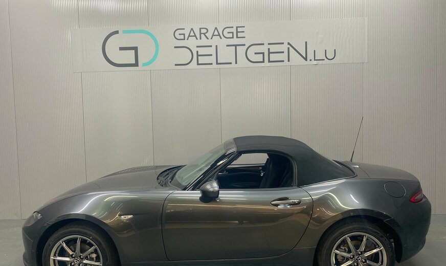 Mazda MX-5 !!! NOTRE STOCK COMPLET SUR https://deltgen.lu/deltgen-cars !!! !!!CONDITIONS FESTIVAL PROLONGEES!!! VOITURE DISPONIBLE ET LIVRABLE DE SUITE Prix catalogue: 33591⬠(Remise du mois 3000⬠= Prix de vente 30591â¬) valable jusqu'au 28/02/2026 Financement à partir de 2.99% Finition Exclusive Line SECURITE : - Régulateur et limiteur de vitesse - Système de suivi de voie (LDWS) - Système de surveillance d'angles morts (BSM) - Système de surveillance d'angles morts en marche arrière (RCTA) - ABS + EBD (répartiteur électronique de la force de feinage) et EBA (assistance au freinage d'urgence) - DSC (contrôle dynamique de stabilité) avec TCS (système antipatinage) - Deux airbags frontaux, airbags latéraux avec protection de la tête - Système de contrôle de la pression des pneus (TPMS) - Aide au démarrage en côte (HLA) EXTERIEUR : - Phares avant LED - Phares arrière LED - Rétroviseurs réglables électriquement, chauffants et coques assorties à la couleur carrosserie - Aide au stationnement - Caméra de recul - Capote noir souple avec isolation à ouverture manuelle - Capteur de pluie et de pénombre - Verrouillage centralisé avec clef intelligente - Jantes en alliage 16 - Poignées de portes couleur carrosserie - Boucliers avant et arrière couleur carrosserie - Différentiel à glissement limité (LSD) INTERIEUR : - Climatisation automatique - Ordinateur de bord avec écran TFT 4,6 en couleur et indication de la température extérieure - Vitres électriques - Rétroviseur intérieur avec fonction antiéblouissement automatique - Volant réglable en hauteur et en profondeur - Volant et pommeau du levier de vitesse gainés de cuir (avec surpiqûres 'Silver') - Commandes audio intégrées au volant - Palettes au volant pour la boîte automatique - Sièges chauffants à l'avant - Panneaux de porte en couleur carrosserie (partie supérieure) - Revêtement du tableau de bord en similicuir noir avec surpiqûres 'Terracotta' - Sellerie en cuir - Protection des seuils de porte en acier inoxidable - Coupe-vent petit format CONNECTIVITà ET INFODIVERTISSEMENT: - Radio AM/FM / DAB / entrées USB et AUX / système audio Bose® avec 9 haut-parleurs - Android Auto® avec fil - Apple Carplay® sans fil - Bluetooth® - Système de navigation (3 ans de mise à jour gratuite des cartes) - HMI Commander et MZD Connect avec écran couleur tactile 7 Garantie usine 6 ans ou 150.000km Assistance Mazda Frais de mise en route (275â¬) et de transport (599â¬) non inclus dans le prix affiché Pour plus de renseignement ou un essai n'hésitez pas à contacter notre service vente: PAULO DA SILVA Tél.: +352 81 82 04-24 WhatsApp / Facetime: +352 621 818 215 sales@deltgen.lu Garage Deltgen à Ettelbrück Votre partenaire au Luxembourg pour Mazda Occasions garanties toutes marques *sauf erreurs ou omissions