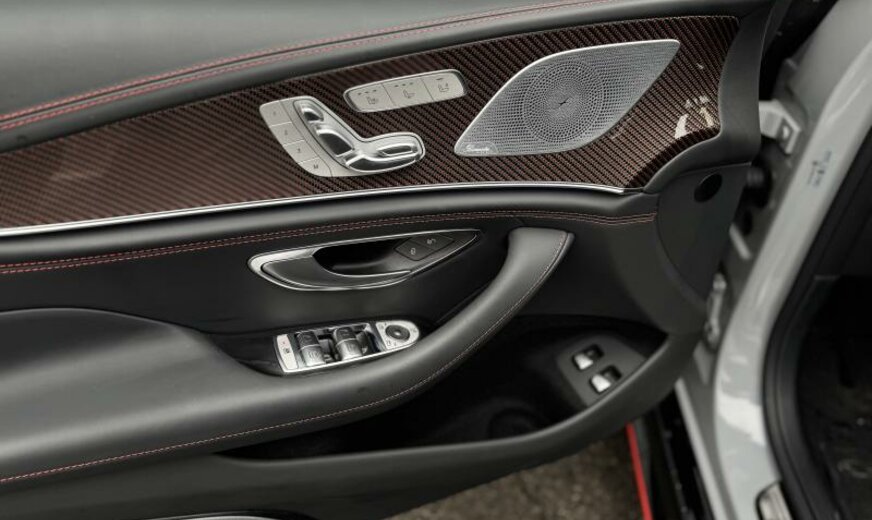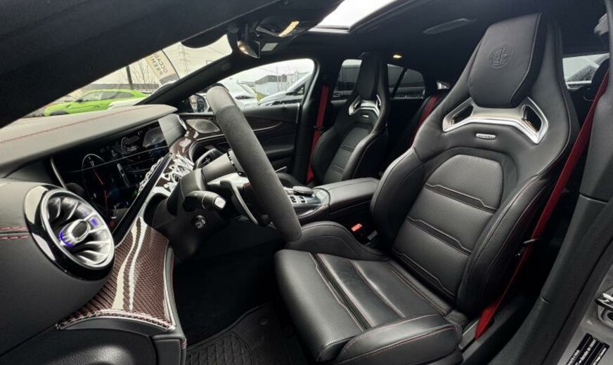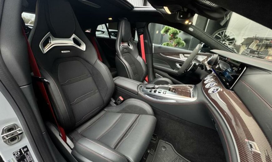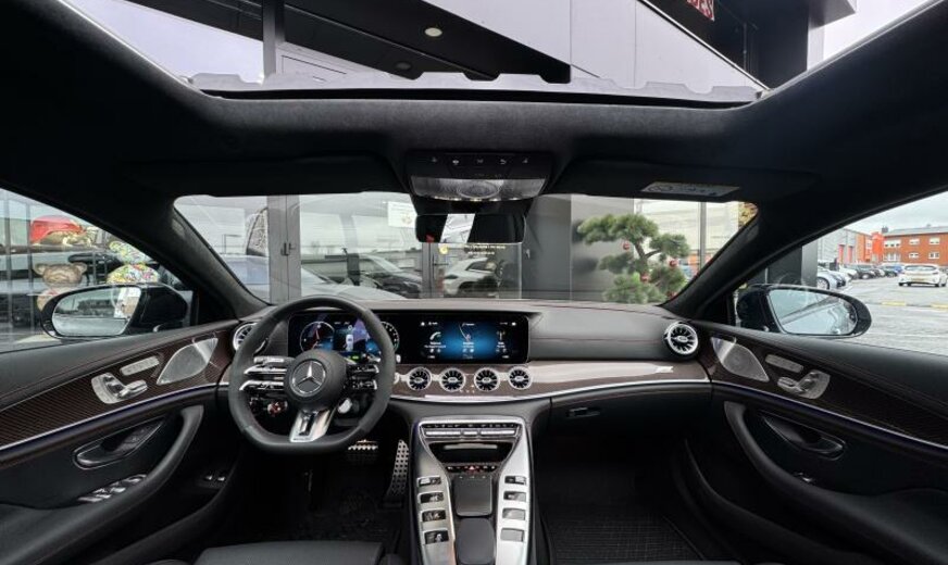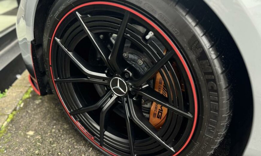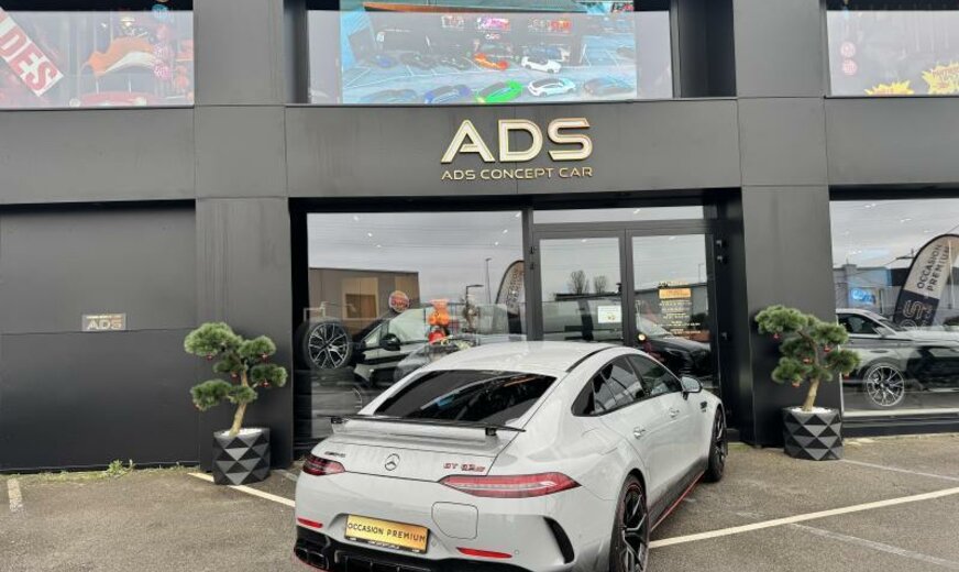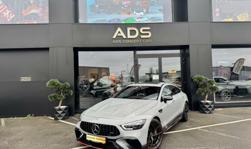 ciel de pavillon Designo en microfibre Dinamica, pack assistant à la conduite, modifications techniques AEJ 22/2, système de chargement sans fil pour appareils mobiles, unité principale ECE/ROW, chargement Smartphone sans fil à l\\'arrière, module de communication LTE, prise de courant 230 V au fond, câble de charge pour prise domestique SCHUKO CEE 7/7 Type E/F Mode 2 , câble de charge pour borne de charge/Wallbox Mode3 Type 2, 3 x 16 A, 11 kW , câble de charge Génération 5.1, année de modifications 2022 modèle 2023 , pack AIR-BALANCE, calandre spécifique AMG foncée, vitrage feuilleté cpl isolant et réfléchissant les infra-rouges, caméra périphérique, pack miroir, fermeture assistée des portes, rétroviseurs conducteur et intérieur jour/nuit automatique, Touchpad, antenne pour mobilophone dans le rétroviseur extérieur, antenne pour GPS dans le rétroviseur extérieur, gicleurs lave-glace chauffants, stripping sport jaune AMG, AMG F1 Edition, sièges AMG Performance, First-Class ar, Easy-Pack Quickfold, son du moteur par haut-parleur, pare-soleil à enrouleur pour lunette ar, pack confort acoustique, becquet ar fixe, boutons AMG au volant, élargisseurs bas caisse avec projecteur de logo \\mise en scène AMG lumineuse\\, pack Premium Plus, ceintures de sécurité ar avec limitateur d\\'effort et Softstop, indicateur de statut du port de ceinture aux places arrières, pack memory, sécurité dans l\\'habitacle, pack vide-poches, pack Park avec caméra de marche arrière, encarts décoratifs carbone avec coutures colorées, échappement AMG Performance sélectable, hayon Easy-Pack, HANDS-FREE ACCESS, enjoliveurs bas caisse AMG avec logo AMG éclairé et coiffe échangeable, récupération de la chaleur du moteur, pack AMG DYNAMIC PLUS, 9G-TRONIC, AIR BODY CONTROL, assistant de direction actif, pack sièges orthopédique, support moteur dynamique AMG, train ar directionnel AMG, 275/35 ZR21 .. Y/315/30 ZR21 .. Y, 10 J x 21/11.5 J x 21 Alu AMG, Tirefit, version pays froids, réservoir carburant de 60/66 L, système de freinage AMG à haute performance en céramique, échappement avec OPF generation, WLTP avec code de commutation RDE, norme acoustique ECE R51-03, ensemble de pays Euro NCAP, protection des piétons, chargeur Combo 2/Type 2, pack night extérieur AMG, pack AMG Night II, pack aérodynamique AMG, monogramme modèle du couvercle ar et des ailes en chrome noir, vernis dur Nano paint/Ceramic paint