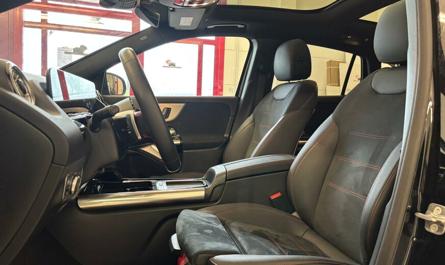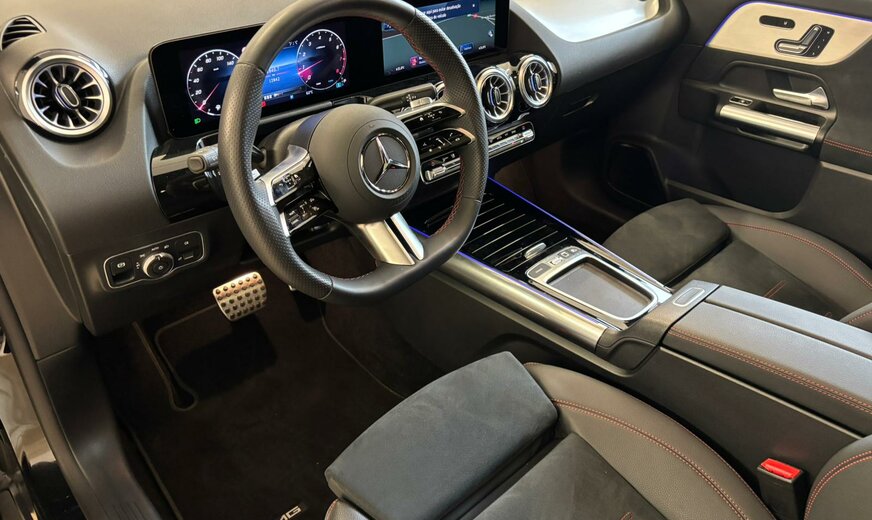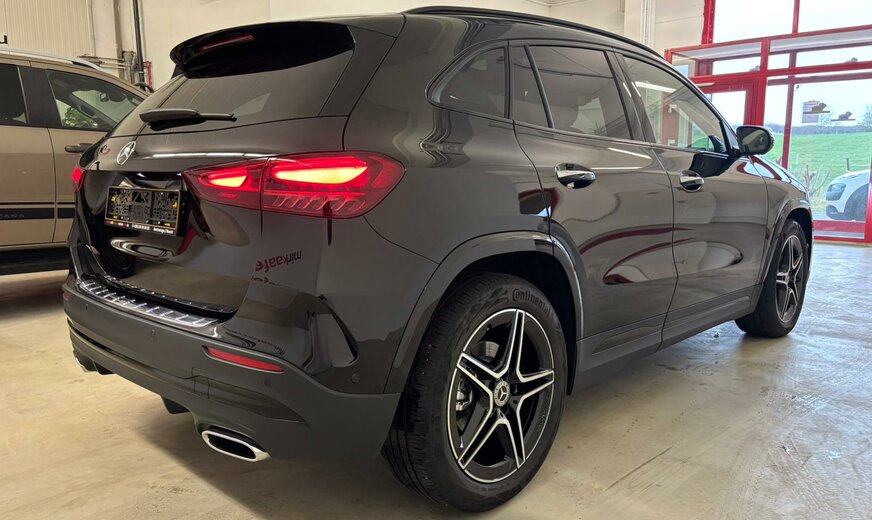 Mercedes-Benz GLA 180 Sonderausstattung: Ausstattungs-Paket: Premium Plus, Bremsanlage: Sportausführung, Einstiegschienen (Edelstahl) beleuchtet, Fahrassistenz-System: Verkehrs-Informations-System Live Traffic, Metallic-Lackierung, Navigationssystem: Festplattennavigation, Night-Paket, Smartphone integriert, Vorrüstung Navigationsdienste Weitere Ausstattung: Airbag Beifahrerseite abschaltbar, Airbag Fahrer-/Beifahrerseite, AuÃenspiegel elektr. verstell- und heizbar, beide, AuÃenspiegel Wagenfarbe, Beckenairbag vorn (Pelvisbag), Brillenfach im Dachhimmel integriert, DAB-Tuner (Radioempfang digital), Design- und Ausstattungslinie AMG Line, Fahrassistenz-System: Agility Select / Dynamic Select (Fahrmodusschalter), Fahrassistenz-System: aktiver Bremsassistent, Fahrassistenz-System: aktiver Spurhalteassistent, Fahrassistenz-System: Geschwindigkeitslimit-Assistent, Fahrzeug Setup (Onlinedienste / Apps), Fahrzeug-Monitoring (Fahrzeugortungssystem), Fensterheber elektrisch vorn + hinten, Karosserie: 5-türig, Keyless Go Startanlage, Knieairbag Fahrerseite, Kommunikationsmodul (LTE) Vorbereitung Mercedes me connect, Kopf-Airbag-System (Windowbag), Lenkrad (Sport) mit Multifunktion, Licht- und Sicht-Paket, Mercedes-Benz Notrufsystem, Mild-Hybrid 110 kW (Motor 1,3 Ltr. - 100 kW CGI), Modellpflege mit Code, Multimediasystem MBUX (Digitales Multimedia-System), Radstand 2729 mm, Reifendruck-Kontrollsystem, Rücksitzbank geteilt/klappbar (40:20:40), Schadstoffarm nach Abgasnorm Euro 6e, Seitenairbag (Sidebag) vorn, Sprachbediensystem Erweiterte Funktionen (MBUX), Start/Stop-Anlage, Steckdose (12V-AnschluÃ), Touchpad (Mittelkonsole), Unterfahrschutz vorn und hinten (silber), USB-Anschluss im Fond, USB-Anschlüsse, Regensensor