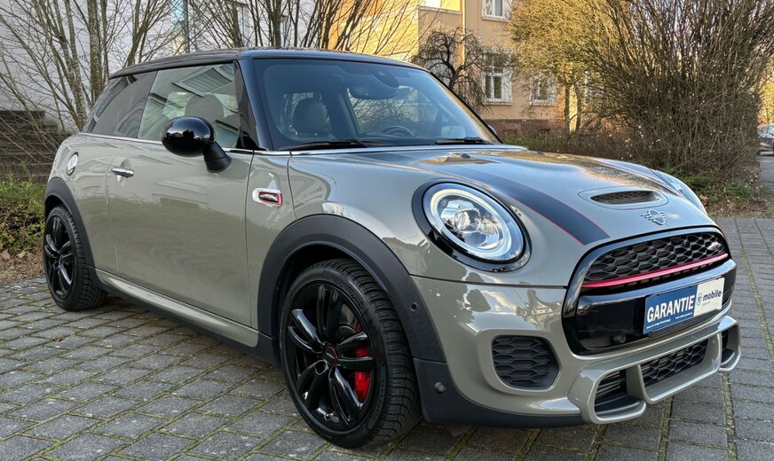 3. Bremsleuchte, Airbag Fahrer-/Beifahrerseite, Audiosystem: Radio MINI Standard, Autom. Begleitfunktion der Beleuchtung (Follow me home), AUX-IN-Anschluss (AUX-IN), AuÃenspiegel elektr. verstellbar, AuÃenspiegel Wagenfarbe, Bordcomputer, Bremsassistent, Bremsenergierückgewinnung, Dach Wagenfarbe, Dachhimmel Anthrazit, Drehzahlmesser, Dynamische Bremsleuchte, Elektron. Bremskraftverteiler, Elektron. Sperrdifferential, Erste Hilfe-Kasten / Verbandkasten, Exterieurumfänge Sidescuttles mit integrierten Blinkern, Getränkehalter, Griffleiste Heckklappe, Schwarz hochglänzend, Heckscheibenwischer, Heckspoiler, Innenausstattung: Color-Line Carbon Black, Innenausstattung: Türverkleidungen und Seitenverkleidung Carbon Black, Innenraumfilter: Heizungsanlage mit Mikrofilter, Isofix-Aufnahmen für Kindersitz, Karosserie: 3-türig, Kopf-Airbag-System hinten, Kopf-Airbag-System vorn, Kopfstützen, Lenksäule (Lenkrad) mechan. verstellbar, MINI Driving Modes, Modellpflege, Motor 2,0 Ltr. - 170 kW 16V, Nebelschlussleuchte, Nichtraucher-Paket, Otto-Partikelfilter (OPF), Pedalerie Edelstahl, Personalisierungssystem (Personal Profile), Rücksitzlehne geteilt/klappbar, Schadstoffarm nach Abgasnorm Euro 6d-TEMP, Schalt-/Wählhebelgriff Leder, Schaltpunktanzeige, Scheibenwaschdüsen und AuÃenspiegel beheizt, Schweller, StoÃfängerecken und Radlaufverbreiterung schwarz, Seitenairbag vorn, Service-System: Intelligenter Notruf inkl. TeleServices, Sitz vorn rechts höhenverstellbar, Sitzausstattung: 4-Sitzer, Sitzbezug / Polsterung: Stoffkombination Dinamica, Sitze vorn mechanisch verstellbar, Sonnenblenden mit Spiegel, Sport-Auspuffanlage, Sportliche Fahrwerksabstimmung, Sportsitze vorn John Cooper Works, Start-Stop-Knopf, Start/Stop-Anlage (Funktion), Türgriffe innen verchromt, USB-Schnittstelle, Warndreieck, Wärmeschutzverglasung getönt, Zentralinstrument mit LED-Ring