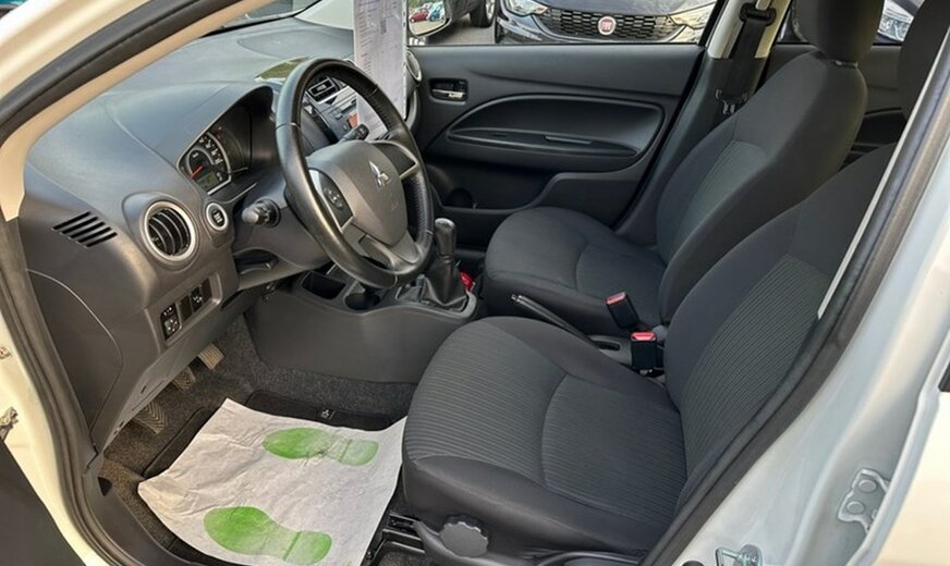 Mitsubishi Attrage berline 1.200i Cleartec-80cv blanche du 14/04/2015 avec 40.518km, Climatisation Automatique, Détecteur de pluie, Detecteur de lumière, Rétroviseurs électriques, verouillage sans clé...