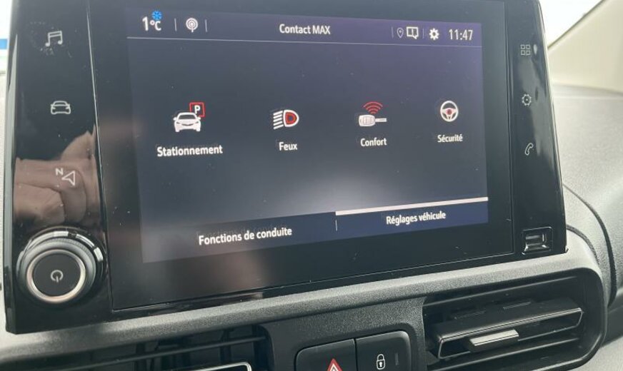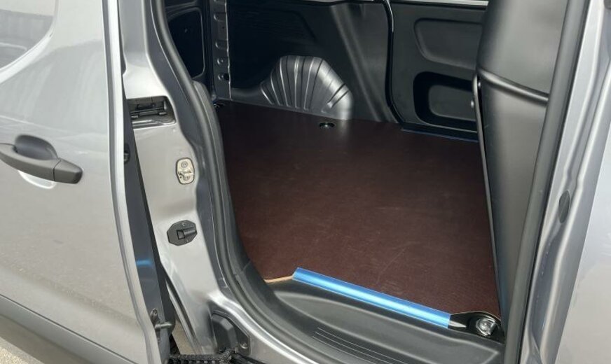 portillon du réservoir verrouillable, radiateur de 28 dm² et de 18 mm d\\\'épaisseur en aluminium, déflecteur d\\\'air du pare-chocs av, pare-brise acoustique, condenseur de 19,3 dm² et de 12 mm d\\\'épaisseur, liquide refroidissement climatisation R134a, lève-vitre conducteur avec commande à impulsions, lève-vitres av à impulsions, lampe de lecture av, rétroviseurs chauffants, radio Connect Nav numérique, 4 haut-parleurs, commande de la radio au volant, feux de croisement/feux de route automatique, banquette passagers av à 2 places, siège conducteur réglable en hauteur, portes ar battantes tôlées, combiné instruments Matrix 3.5\\\", poignées de porte intérieures chromées, vide-poches sous le pavillon av, plancher de chargement en bois antidérapant, Autodiagnose OBD On Board Diagnostic , pré-chauffage du carter, protection sous moteur avec déflecteur court, 1499 cc 1,5 L 96 KW YHZ DV5RC, berceau porteur av en acier, bras de suspension av en acier, frein à main électrique, barre stabilisatrice av 37.500 Nm, barre stabilisatrice ar 39.000 Nm, suspension de type 5, largeur de voie du train av 610, charge utile de 650 kg, disques de frein av 304 mm, 6,5 J x 16 gris, alternateur 180 A, roue de secours acier, réservoir carburant avec protection contre les erreurs de remplissage Diesel , batterie 70 Ah EFBC, norme anti-pollution Euro 6.4, porte coulissante d, Fourgon, empattement 2785 mm M