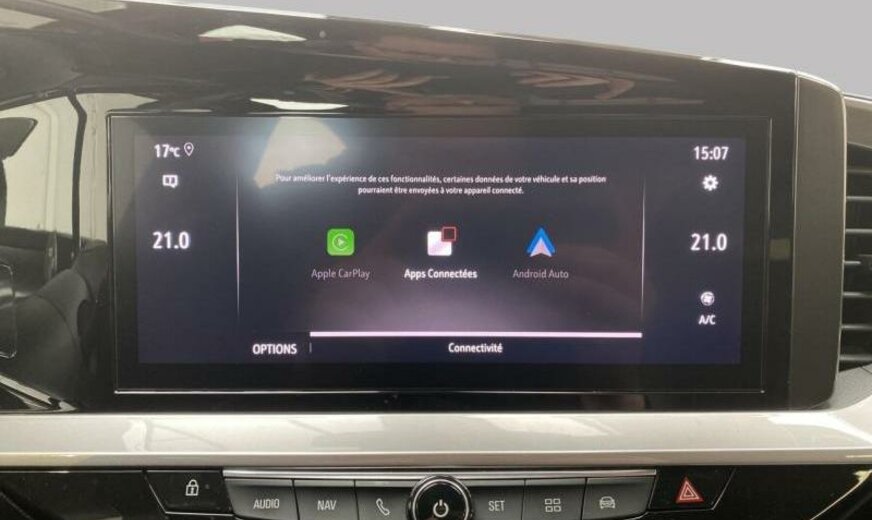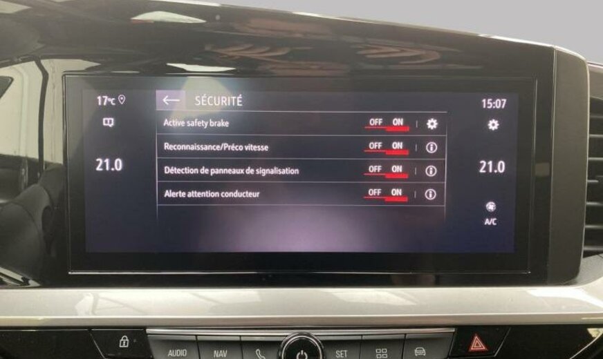 radiateur de 21 dm² et de 21 mm d\\\'épaisseur, condenseur de 20 dm² et de 12 mm d\\\'épaisseur, liquide de climatisation R1234YF, lecteur de la limitation de vitesse et des panneaux de signalisation, fonctionnalité \\\"Mirror screen\\\", unité de commande Telematik indépendante 3S, 6 haut-parleurs, ligne d\\\'équipement Salin, combiné instruments digital 12\\\", embout d\\\'échappement double, 1199 cc 1,2 L 96 KW HNS EB2ADTS, commande de vitesse au volant, 7 J x 18 Alu 5 branches 2 tons noir, alternateur 150 A UHEA, norme anti-pollution Euro 6.3, batterie 70 Ah EFBC, écrans enjoliveurs latéraux du pare-chocs av chromés, enjoliveur de l\\\'embout du tuyau d\\\'échappement, enjoliveurs sup cadre vitre inox, réglage hauteur phares automatique, peinture 2 tons
