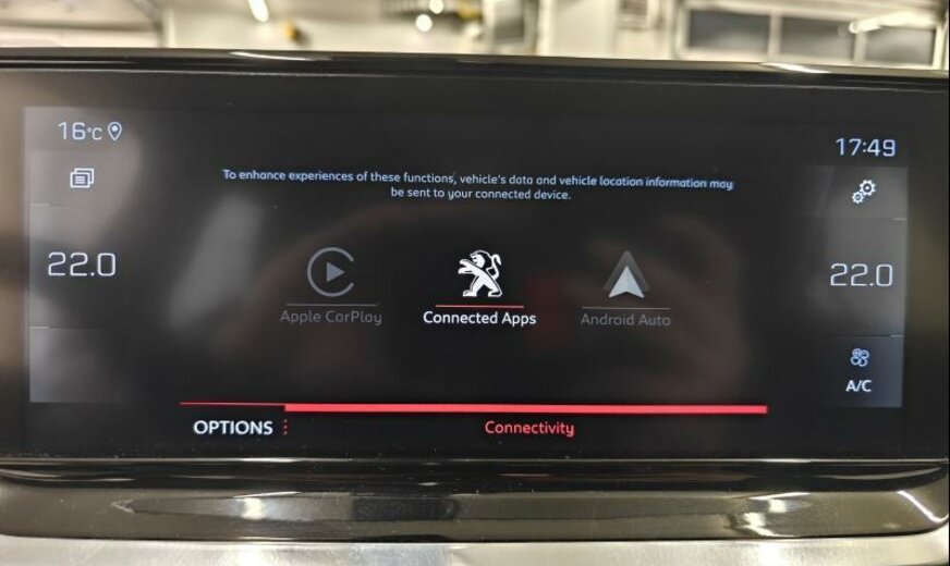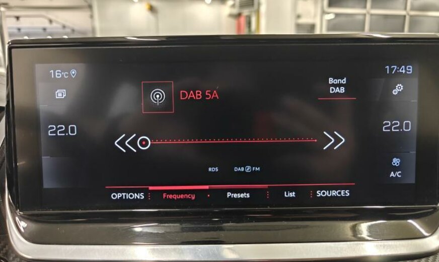 acoustique améliorée, liquide de refroidissement R1234yf, système audio Connect Nav numérique, unité de commande Telematik indépendante 3R, moniteur DGT10C HD, antenne intégrée et numérique, système de chargement sans fil pour Smartphone, commande de la radio au volant, feux de jour à LED, allumage automatique des phares, Visio Park 1 avec caméra à 180°, siège passager réglable en hauteur, décoration tableau de bord Colores N3 P2, tableau de bord Quartz, ligne d\\\'équipement Salin, ceintures de sécurité av/ar avec avertisseur d\\\'oubli, filtre à carburant extérieur essence , norme anti-pollution Euro 6.3, condenseur de 20 dm² et de 12 mm d\\\'épaisseur, alternateur 150 A, batterie 70 Ah EFR, déflecteur d\\\'air double réglable pour radiateur, 1199 cc 1,2 L 96 KW HNS EB2ADTS, frein à main électrique, suspension de type 2, disques de frein av 283 mm, berceau av Alu, 6,5 J x 17 Alu Diamantee Salamanca, roue de secours temporaire, galerie de pavillon noir brillant, radiateur de 21 dm² et de 21 mm d\\\'épaisseur, bandeaux de protection latérale avec encarts en métal, grille de calandre avec moulures horizontales, embout échappement double chromé
