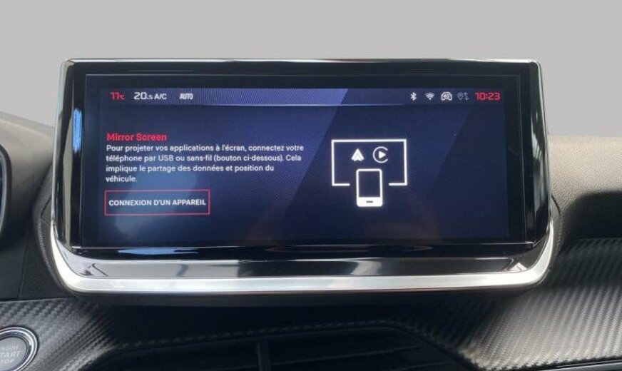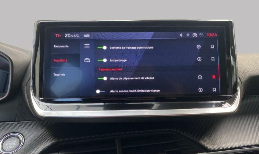 Facelift, acoustique améliorée, liquide de refroidissement R1234yf, système de chargement sans fil pour Smartphone, commande de la radio au volant, moniteur 10\\\" HD, feux de jour à LED, allumage automatique des phares, siège passager réglable en hauteur, décoration tableau de bord Colores N3 P2, ligne d\\\'équipement noir, ceintures de sécurité av/ar avec avertisseur d\\\'oubli, filtre à carburant extérieur essence , condenseur de 20 dm² et de 12 mm d\\\'épaisseur, batterie 70 Ah EFBC, commande hydraulique de l\\\'embrayage, déflecteur d\\\'air double réglable pour radiateur, 1199 cc 1,2 L 74 KW HNK EB2ADTD, frein à main électrique, disques de frein av 283 mm, berceau porteur av en acier, 6,5 J x 17 Alu Diamantee brillant noir, kit réparation pneus, galerie de pavillon noir brillant, radiateur de 21 dm² et de 18 mm d\\\'épaisseur, bandeaux de protection latérale avec encarts en métal, embout échappement, 3 couches nacrée