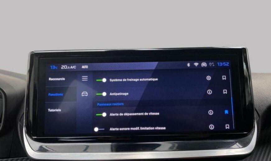 acoustique améliorée, liquide de refroidissement R1234yf, système de chargement sans fil pour Smartphone, commande de la radio au volant, moniteur 10\\\" HD, feux de jour à LED, allumage automatique des phares, siège passager réglable en hauteur, décoration tableau de bord Colores N3 P2, ligne d\\\'équipement noir, ceintures de sécurité av/ar avec avertisseur d\\\'oubli, filtre à carburant extérieur essence , condenseur de 20 dm² et de 16 mm d\\\'épaisseur, déflecteur d\\\'air double réglable pour radiateur, 1199 cc 1,2 L 100 KW EB2LTDH2, frein à main électrique, suspension de type 2, disques de frein av 302 mm, berceau porteur av en acier, 6,5 J x 17 Alu Diamantee brillant noir, kit réparation pneus, galerie de pavillon noir brillant, radiateur de 21 dm² et de 21 mm d\\\'épaisseur, bandeaux de protection latérale avec encarts en métal, embout échappement double chromé
