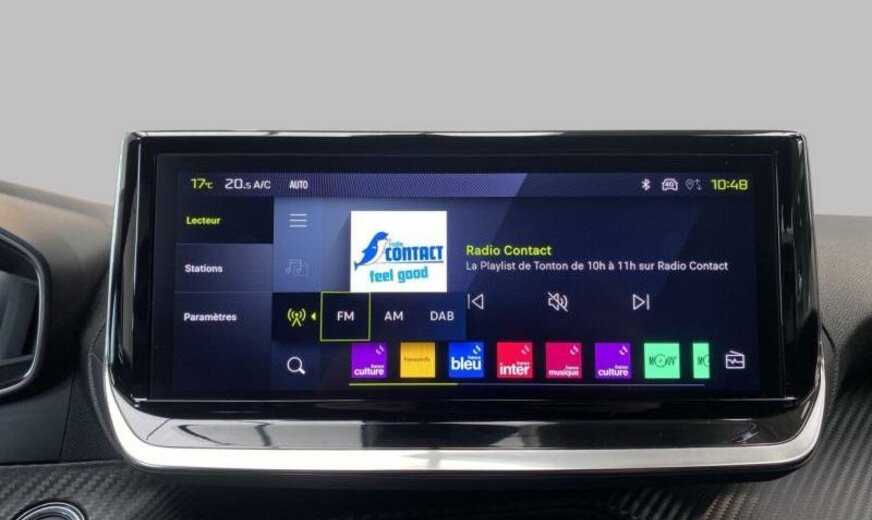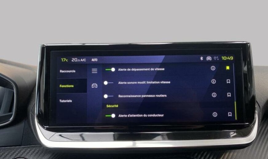acoustique améliorée, liquide de refroidissement R1234yf, système de chargement sans fil pour Smartphone, commande de la radio au volant, moniteur 10\\\" HD, feux de jour à LED, allumage automatique des phares, siège passager réglable en hauteur, décoration tableau de bord Colores N3 P2, ligne d\\\'équipement noir, ceintures de sécurité av/ar avec avertisseur d\\\'oubli, filtre à carburant extérieur essence , condenseur de 20 dm² et de 16 mm d\\\'épaisseur, déflecteur d\\\'air double réglable pour radiateur, 1199 cc 1,2 L 100 KW EB2LTDH2, frein à main électrique, suspension de type 2, disques de frein av 302 mm, berceau porteur av en acier, 6,5 J x 17 Alu Diamantee brillant noir, kit réparation pneus, ESP réglable, galerie de pavillon noir brillant, radiateur de 21 dm² et de 21 mm d\\\'épaisseur, bandeaux de protection latérale avec encarts en métal, embout échappement double chromé
