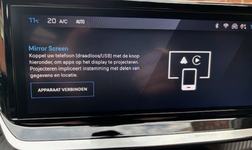 Peugeot I-Connect : 10''HD touchscreen + Radio DAB + 4 USB + wireless Mirror screen + BT + Wifi - capacitief 10" touchscreen HD - Radio DAB - 4 USB-aansluitingen: 2 in de console vooraan (1 type C "data + opladen") & 1 tpye C (alleen opladen) + 2 in de console achteraan (1 type A & 1 type C) - Wireless Mirror Screen (Apple CarplayTM / Android Auto) - connectivité Bluetooth - Wifi