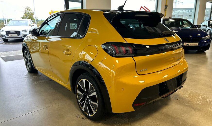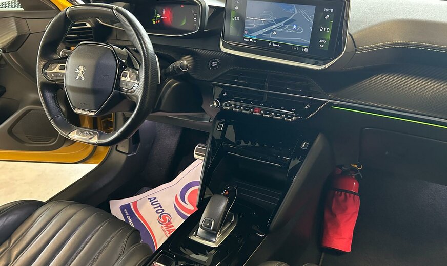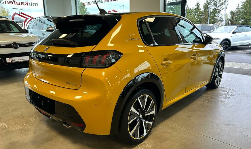 Peugeot 208 Sonderausstattung: Audio-Navigationssystem NAC 3-D, DAB+ mit Farbdisplay und Connect-Box, Dachfarbe schwarz, Fahrassistenz-System: Park-Assistent inkl. Rückfahrkamera, Fahrassistenz-System: Totwinkel-Assistent mit aktivem Lenkeingriff, GT-Line-Paket, Induktionsladeschale für Smartphone, Metallic-Lackierung, Voll-Leder-Paket Weitere Ausstattung: Airbag Beifahrerseite abschaltbar, Airbag Fahrer-/Beifahrerseite, Antischlupfregelung (ASR), Audiosystem RCC (Radio, MP3-fähig), Autom. Begleitfunktion der Beleuchtung (Coming Home, Leaving Home), Außenspiegel elektr. verstell- und heizbar, beide, Blinkleuchte in Außenspiegel integriert, Bordcomputer, Einparkhilfe hinten, Einschaltautomatik für Fahrlicht, Elektr. Bremskraftverteilung, Elektrik-Paket, Fahrassistenz-System: Aktiver Notbrems-Assistent (Active Safety Brake), Fahrassistenz-System: aktiver Spurassistent (Lenkunterstützung), Fahrassistenz-System: Auffahrwarnsystem mit Bremsfunktion, Fahrassistenz-System: Berganfahrhilfe, Fahrassistenz-System: Kollisionswarnsystem, Fahrassistenz-System: Müdigkeitserkennungs-Sensor, Fahrassistenz-System: Verkehrszeichenerkennung, Fahrmodusschalter, Fensterheber elektrisch vorn links, sequentiell, Frontscheibe geräuschdämmend, Fußraumleuchte vorn LED, Getriebe Automatik - (8-Stufen), Getränkehalter vorn, Heckleuchten LED, Heckscheibe heizbar, Heckschürze, schwarz glänzend, Heckspoiler, Heckspoiler schwarz glänzend, Innenraumfilter: Staub- und Pollenfilter, Isofix-Aufnahmen für Kindersitz, Karosserie: 5-türig, Kartentasche an Vordersitze, Kindersicherung elektrisch, Kombiinstrument mit Matrix-Display, Komfort-Paket, Kopf-Airbag-System hinten, Kühlergrill verchromt, Lenkrad mit Multifunktion, LM-Felgen, Mobile Online Dienste Mirror Screen, Motor 1,2 Ltr. - 74 kW PureTech, Otto-Partikelfilter (GPF), Parkbremse elektrisch, Peugeot Connect-Box / SOS-Taste (Notruf für Lokalisierung Fahrzeug), Pyrotechnischer Gurtstraffer, Radioempfang digital (DAB+), Reifendruck-Kontrollsystem, Rücksitzbank klappbar 1/3-2/3, Rücksitzlehne geteilt/klappbar, Schadstoffarm nach Abgasnorm Euro 6d, Seitenairbag vorn, Sitz vorn links höhenverstellbar, Start/Stop-Anlage, Startanlage Keyless System, Steckdose (12V-Anschluß) in Mittelkonsole, Türgriffe außen Wagenfarbe, Verzurrösen Laderaum, Warnanlage für Sicherheitsgurte