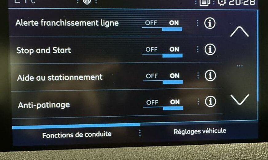 allumage automatique des phares, décorations intérieures en carbone, train ar 30000 Nm, insonorisant tablier 7 kg, déflecteur d\\\'air plancher avant long, vitres des portes ar avec protection acoustique, ventilateur électrique 140 W compact, faisceau Multiplex Eco 2, admission d\\\'air radiateur, enjoliveur inférieur pare-chocs av/écrans échappement ar chromé, autodiagnostic OBD, système audio Connect Nav numérique, fonctionnalité \\\"Mirror Screen\\\", unité de commande Telematik indépendante 3R, siège passager réglable en hauteur, avertisseur d\\\'oubli ceintures de sécurité ar, déflecteur d\\\'air double réglable pour radiateur, catalyseur inférieur à 50ppm, déflecteur d\\\'air double réglable pour radiateur, 1199 cc 1,2 L 96 KW HNS EB2ADTS, 1199 cc 1,2 L 96 KW HNS EB2ADTS_I, pays froids, rangée de boutons chromée, norme anti-pollution Euro 6.3, disques de frein ar 290 mm, disques de frein av 304 mm, 7,5 J x 18 Alu Detroit mat, alternateur 150 A, roue de secours temporaire, batterie 70 Ah EFR, bandeaux de protection latérale chromés, capteur ABS ar avec marque, condenseur de 23,5 dm² et de 12 mm d\\\'épaisseur, possibilité de réparation améliorée, modifications techniques Initiale, radiateur de 28 dm² et de 28 mm d\\\'épaisseur en aluminium, galerie de pavillon, rallonge traverse du train av, plancher de coffre réglable, 3 couches nacrée