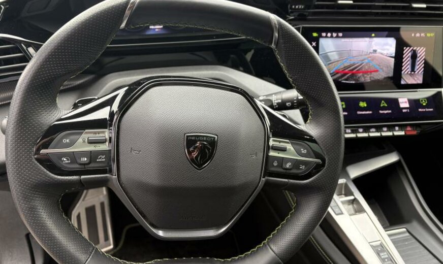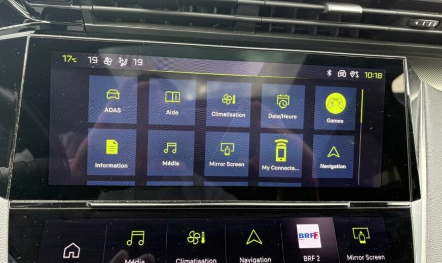 avertisseur à deux tons, moulures de vitres noir brillant, vitres des portes av avec protection acoustique, condenseur de 19,3 dm² et de 12 mm d\\\'épaisseur, Rear Cross Traffic Alert, Bi-tuner, 6 haut-parleurs, instruments digitaux 3D, chargement smartphone, feux de jour LED, éclairage périphérique, équipement GT, décorations intérieures en textile avec piqûres contrastées, Peugeot Connect Assistance, console pavillon avec 3 LED, pares-soleil éclairés, sièges av Confort, écrans élargisseurs bas de caisse, 1199 cc 1,2 L 96 KW HNS EB2ADTS, radiateur de 28 dm² et de 18 mm d\\\'épaisseur en aluminium, commande de vitesse au volant, pédalier en Alu, suspension normale, colonne de direction réglable en profondeur, 8 J x 18 Alu \\\"Kamakura\\\", alternateur 150 A, ventilateur électrique 140 W RB45, batterie 70 Ah EFBC, réglage hauteur phares automatique, 2 couches nacrée