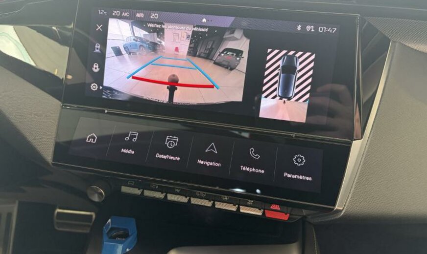 avertisseur à deux tons, moulures de vitres noir brillant, vitres des portes av avec protection acoustique, condenseur de 19,3 dm² et de 12 mm d\\\'épaisseur, Rear Cross Traffic Alert, Bi-tuner, instruments digitaux 3D, chargement smartphone, feux de jour LED, éclairage périphérique, équipement GT, décorations intérieures en textile avec piqûres contrastées, Peugeot Connect Assistance, console pavillon avec 3 LED, pares-soleil éclairés, sièges av Confort, écrans élargisseurs bas de caisse, réservoir carburant avec protection contre les erreurs de remplissage Diesel , radiateur de 28 dm² et de 28 mm d\\\'épaisseur en aluminium, 1499 cc 1,5 L 96 KW YHZ DV5RC, commande de vitesse au volant, pédalier en Alu, suspension normale, colonne de direction réglable en profondeur, disques de frein av 304 mm, 8 J x 18 Alu \\\"Kamakura\\\", alternateur 180 A, ventilateur électrique 140 W, batterie 70 Ah EFBC, réglage hauteur phares automatique, 3 couches nacrée