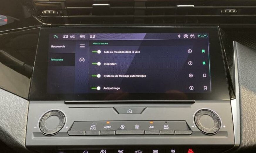 avertisseur à deux tons, condenseur de 19,3 dm² et de 12 mm d\\\'épaisseur, 6 haut-parleurs, instruments digitaux, équipement Active, Peugeot Connect Assistance, sièges av Confort, 1199 cc 1,2 L 96 KW HNS EB2ADTS, radiateur de 28 dm² et de 18 mm d\\\'épaisseur \\\"F1\\\", suspension normale, colonne de direction réglable en profondeur, barre stabilisatrice av 27.500 Nm, disques de frein av 304 mm, 7 J x 16 Alu \\\"Auckland\\\", alternateur 150 A, ventilateur électrique 95 W, norme anti-pollution Euro 6.4, batterie 70 Ah EFBC