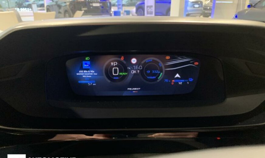 vanaf 01.24 17220, signaalhoorn met 2 tonen, ruitsierlijsten zwart glanzend, laadkabel T2 Mode 3 voor Wallbox, deurruiten voor akustisch, supervergrendeling, Rear Cross Traffic Alert, scheidingsnet bagageruimte, Bi-tuner, 6 luidsprekers, instrumentenblok digitaal 3D, Smartphone lader, omgevingsverlichting, decoratie binnen textiel met contrastnaad, Peugeot Connect Assistance, zonneblinden verlicht, Thatcham Security, zetels voor Dynamic, afdekkingen drempelverbreders, elektromotor 115 kW ZKX, schakelbediening aan stuurwiel, pedalendrager Alu, automatische versnellingsbak elektronisch RG1L, ophanging normaal, stuurkolom met diepteregeling, stabilisator voor 30000 Nm, remschijven voor 304 mm, remschijven achter 290 mm, voordeel naar voor verplaatst, elektrische ventilator 170 W, dakreling, batterij 70Ah LDC, hoogteregeling koplampen automatisch