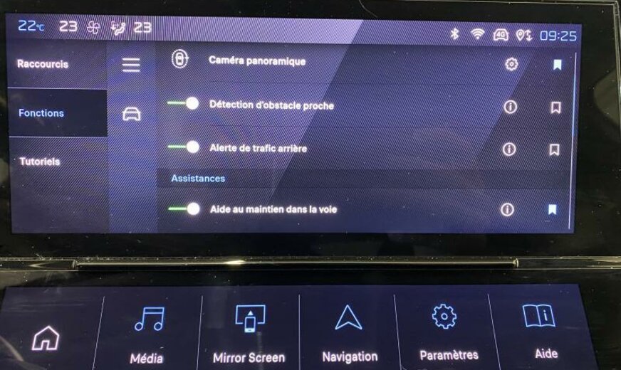 avertisseur à deux tons, moulures de vitres noir brillant, vitres des portes av avec protection acoustique, condenseur de 19,3 dm² et de 12 mm d\\\'épaisseur, Rear Cross Traffic Alert, instruments digitaux, allumage automatique des phares, éclairage périphérique, déflecteur d\\\'air double réglable pour radiateur, Autodiagnose OBD On Board Diagnostic , protection sous mécanique longue, 1199 cc 1,2 L 96 KW HNS EB2ADTS, radiateur de 28 dm² et de 18 mm d\\\'épaisseur en aluminium, disques de frein av 304 mm, 7 J x 19 Alu \\\"Quartz Diamantee\\\", alternateur 150 A UHEA, ventilateur électrique 140 W RB45, norme anti-pollution Euro 6.4, batterie 70 Ah EFBC