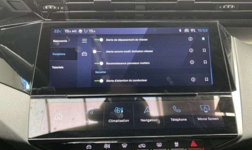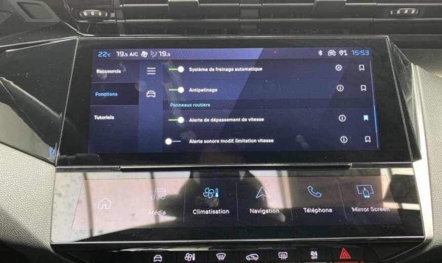 avertisseur à deux tons, moulures de vitres noir brillant, vitres des portes av avec protection acoustique, condenseur de 23,5 dm² et de 12 mm d\\\'épaisseur, super condamnation, Rear Cross Traffic Alert, hayon avec ouverture à l\\\'aide du pied, instruments digitaux 3D, éclairage périphérique, monogramme aux portes av, décorations intérieures \\\"Mistral\\\", Peugeot Connect Assistance, pares-soleil éclairés, protection du seuil de chargement de coffre en inox, déflecteur d\\\'air double réglable pour radiateur, Autodiagnose OBD On Board Diagnostic , protection sous mécanique longue acoustique, 1199 cc 1,2 L 100/107 kW EB2LTDH2, pédalier en Alu, disques de frein av 304 mm, 7 J x 19 Alu \\\"Graphite\\\", batterie 70 Ah LDC, réglage hauteur phares automatique, 2 couches nacrée