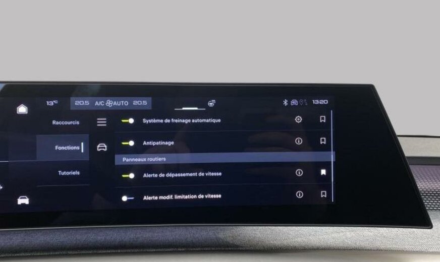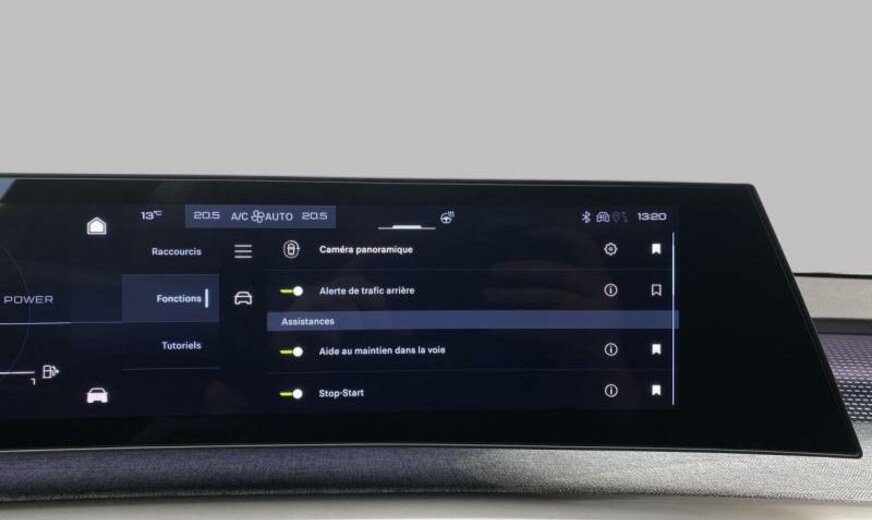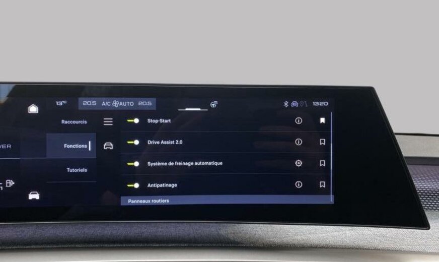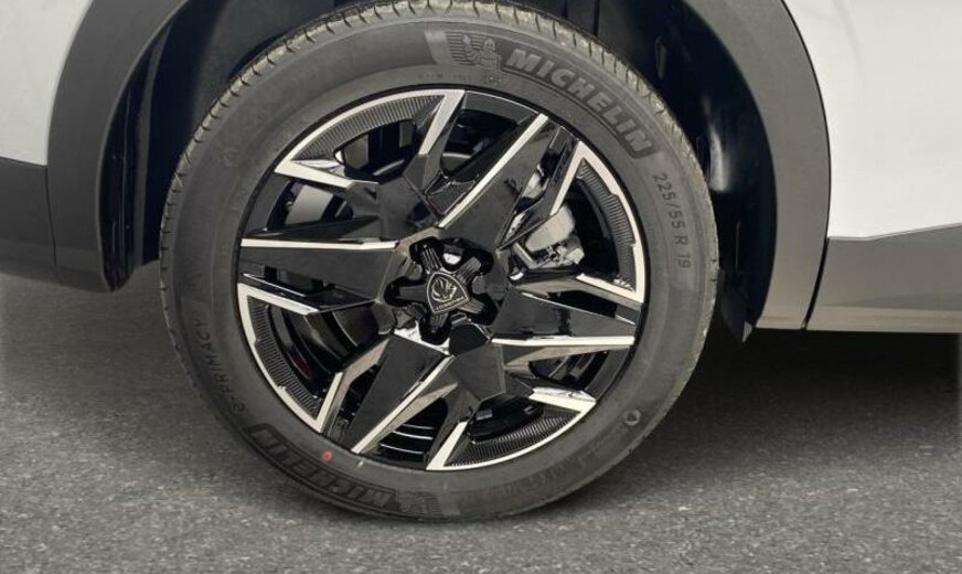 condenseur de 23,5 dm² et de 12 mm d\\\'épaisseur, Rear Cross Traffic Alert, super condamnation, hayon avec ouverture à l\\\'aide du pied, chargement smartphone, assistant de maintien de trajectoire, équipement GT, siège conducteur réglable en hauteur, pare-chocs av/ar Design 03, tableau de bord/garniture porte tissu Rimini avec écrans Alu, pare-soleil avec miroir éclairé, aide au parking latéral, moniteur \\\"EDGE\\\" inférieur 9,7\\\", 1199 cc 1,2 L 100/107 kW HPY EB2LTDH2, radiateur de 28 dm² et de 21 mm d\\\'épaisseur en aluminium, pédales en aluminium, bras de suspension av symétriques en acier, disques de frein av 330 mm, disques de frein ar 330 mm, 7,5 J x 19 Alu \\\"Breda\\\", batterie 70 Ah LDC, pièces av reculées, grille de calandre Okenite blanc