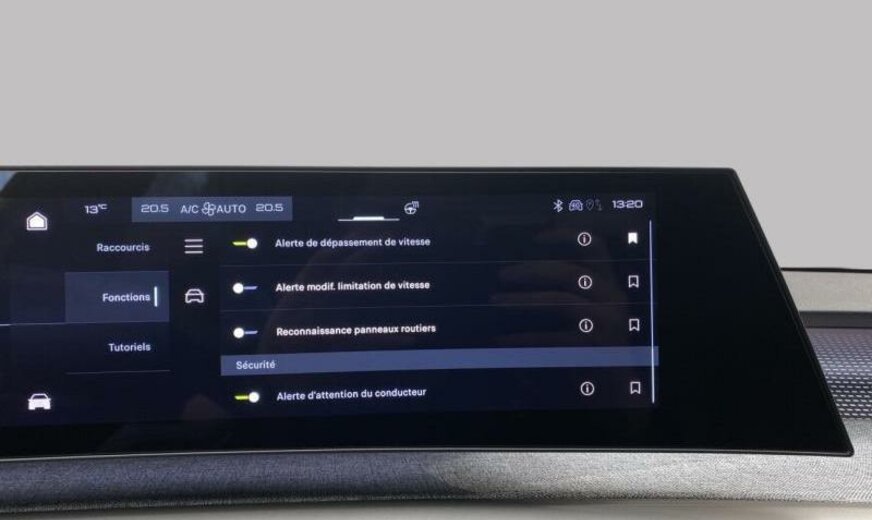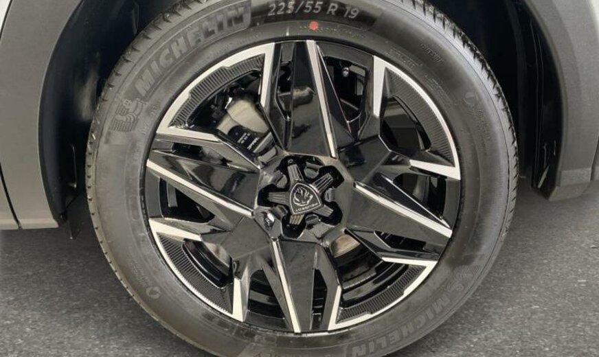 condenseur de 23,5 dm² et de 12 mm d\\\'épaisseur, Rear Cross Traffic Alert, super condamnation, hayon avec ouverture à l\\\'aide du pied, chargement smartphone, assistant de maintien de trajectoire, équipement GT, siège conducteur réglable en hauteur, pare-chocs av/ar Design 03, tableau de bord/garniture porte tissu Rimini avec écrans Alu, pare-soleil avec miroir éclairé, aide au parking latéral, moniteur \\\"EDGE\\\" inférieur 9,7\\\", 1199 cc 1,2 L 100/107 kW HPY EB2LTDH2, radiateur de 28 dm² et de 21 mm d\\\'épaisseur en aluminium, pédales en aluminium, bras de suspension av symétriques en acier, disques de frein av 330 mm, disques de frein ar 330 mm, 7,5 J x 19 Alu \\\"Breda\\\", batterie 70 Ah LDC, pièces av reculées, grille de calandre Okenite blanc