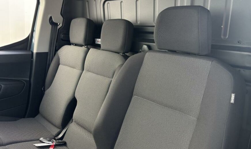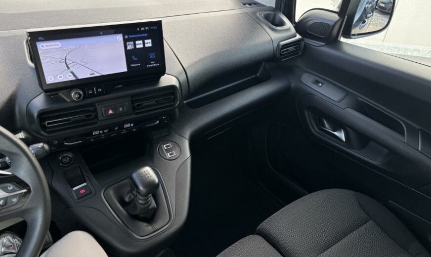 radiateur de 28 dm² et de 18 mm d\\\'épaisseur en aluminium, pare-brise acoustique, condenseur de 19,3 dm² et de 12 mm d\\\'épaisseur, liquide de refroidissement R1234yf, lève-vitres av à impulsions, Visio Park 1 avec caméra à 180°, rétroviseur int avec fonction \\\"Surround Rear Vision\\\", lampe de lecture av, rétroviseur int avec Display, 4 haut-parleurs, commande de la radio au volant, moniteur 10\\\" HD, chargement smartphone, feux de croisement/feux de route automatique, banquette passagers av à 2 places, siège conducteur réglable en hauteur, tablettes rabattables aux sièges av, portes ar battantes tôlées, levier de sélection avec pommeau de classe médiane, combiné instruments TFT 10\\\", commande de vitesse au volant, insonorisant tablier, vide-poches sous le pavillon av, rétroviseurs peints en noir, Autodiagnose OBD On Board Diagnostic , pré-chauffage du carter, protection boîtier fusibles, 1499 cc 1,5 L 75 KW YHT DV5RCF, berceau porteur av en acier, bras de suspension av en acier, frein à main électrique, barre stabilisatrice av 37.500 Nm, barre stabilisatrice ar 39.000 Nm, suspension de type 5, largeur de voie du train av 610, charge utile de 650 kg, disques de frein av 283 mm, 6,5 J x 16 gris, alternateur 180 A, roue de secours acier, réservoir carburant avec protection contre les erreurs de remplissage Diesel , norme anti-pollution Euro 6.4, batterie 70 Ah EFBC, porte coulissante g, porte coulissante d, Fourgon, pièces av reculées, Facelift, empattement 2785 mm M , Espagne Vigo FV, 2 couches minérale