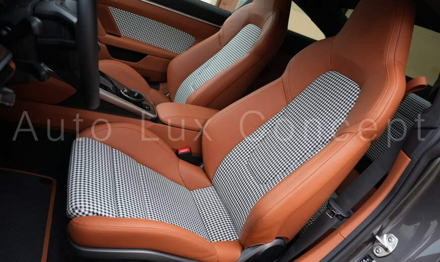 Sellerie : EC Heritage Design Classic avec cuir semi-aniline étendu bicolore en Noir / Classic Cognac et tissu Pepita en Noir / Blanc