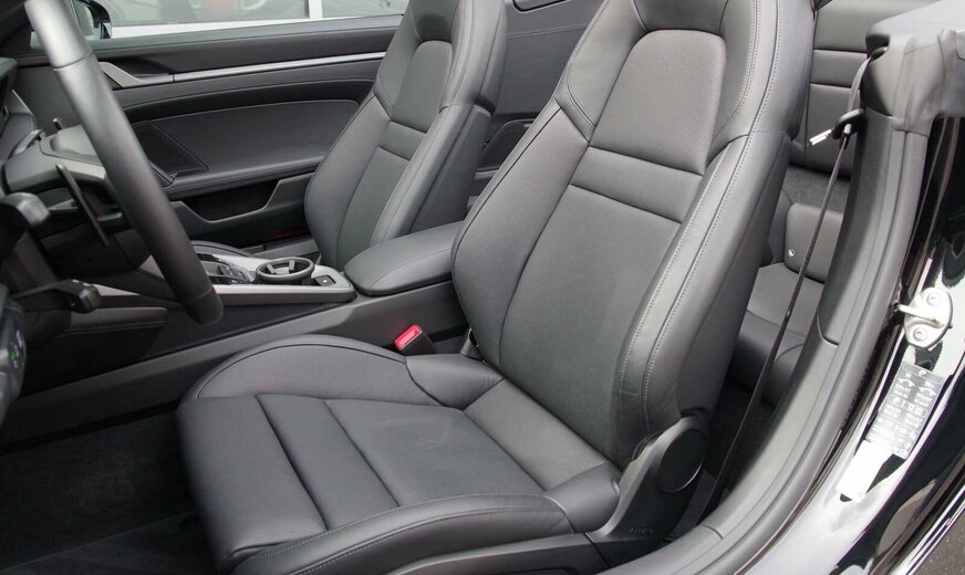 - Polsterung: Glattleder in Schwarz (Oberteil Schalttafel, Unterteil Schalttafel inkl. Handschuhfachdeckel, Oberteil Türverkleidung, Türspiegel, Seitenverkleidung Fond, Sitzboden, Rückseite Sitzlehne vorn, Sitzmittelbahn hinten, Sitzwangen hinten, Mitteltunnel Fond)