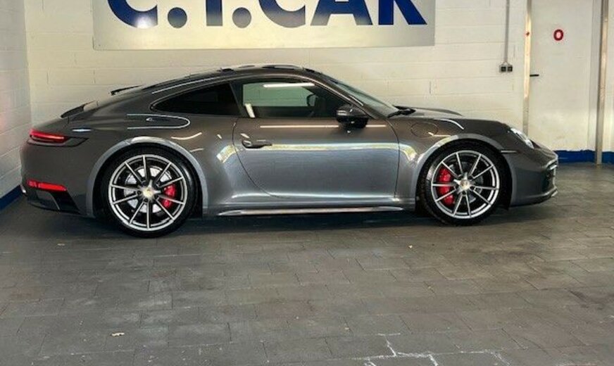 Airbag Fahrer-/Beifahrerseite, Antriebsart: Allradantrieb, Außenspiegel asphärisch, links, Außenspiegel elektr. verstell- und heizbar, beide, Blinkleuchten LED, Bremssättel Rot lackiert, Connect Plus (Bluetooth, Apple CarPlay, WLAN, Vehicle-Tracking-System), Dachhimmel Stoff, Diebstahl-Warnanlage mit Innenraumüberwachung, Drehzahlmesser, Einschaltautomatik für Fahrlicht, Einstiegsblenden mit Modellbezeichnung (Aluminium), Fahrassistenz-System: Berganfahr-Assistent (Hill-Holder), Fahrassistenz-System: Kollisionswarnsystem mit Bremseingriff und Fußgängererkennung, Fensterzierleisten schwarz, Fußmatten, Getriebe 8-Gang - Doppelkupplungsgetriebe (PDK), Getränkehalter, Heckleuchten LED, Heckscheibe heizbar, Heckspoiler, Innenraumfilter: Aktivkohlefilter (Geruchsfilter), Interieur-Paket: Diamar Dark Silver, Isofix-Aufnahmen für Kindersitz an Beifahrersitz, Karosserie: 2-türig, Keyless Drive, Kleiderhaken Sitzrückenlehne Leder, Klimaautomatik 2-Zonen, Kopf-Airbag-System Porsche Side Impact Protection System (POSIP), Kopf-Schulter-Airbag vorn (Thoraxbag), Motor 3,0 Ltr. - 331 kW KAT, Otto-Partikelfilter (OPF), Parkbremse elektrisch, Porsche Active Suspension Management (PASM), Porsche Communications Management (PCM) inkl. Online - Navigationsmodul, Porsche Torque Vectoring Plus (PTV Plus), Reifendruck-Kontrollsystem, Schadstoffarm nach Abgasnorm Euro 6d-TEMP, Schriftzug Modellreihe, Sport Taste, Start/Stop-Anlage, Turbo, Vehicle-Tracking-System (PVTS), Verglasung getönt