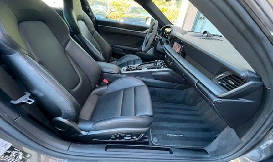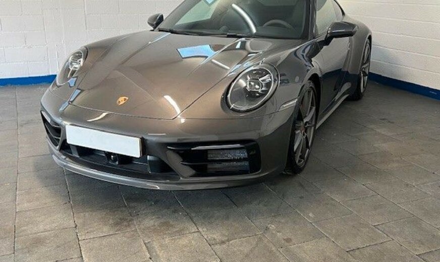 Adaptive Sportsitze inkl. Sitzverstellung 18-Wege und Memory-Paket, Außen-/Innenspiegel mit Abblendautomatik und Regensensor, Außenspiegel elektr. anklappbar, Fahrassistenz-System: Park-Assistent vorn und hinten inkl. Rückfahrkamera und Surround View, Fahrassistenz-System: Spurwechselassistent, Frontscheibe mit Bandfilter oben, Fzg. ohne Modellbezeichnung, Heckscheibenwischer, Innenausstattung: Ganzleder, abweichende Farbe, Kopfstützen vorn mit Porschewappen, Lenkrad heizbar (Sport / Alcantara, 3-Speichen) mit Schaltfunktion, LM-Felgen (Platin, seidenmatt lackiert), Matrix-LED-Scheinwerfer inkl. Porsche Dynamic Light System Plus (PDLS+), Metallic-Lackierung, Reifen-Reparaturkit, Schiebedach elektrisch (Glas), Schriftzug 911 Chromfarben, Servolenkung Plus (geschwindigkeitsabhängig), Sitzheizung vorn, Sound-System Burmester High-End Surround, Sport-Chrono-Paket, Sport-Design-Paket, Sport-Fahrwerk (PASM) elektronisch gesteuert, Verglasung hinten abgedunkelt (Privacyverglasung), Ziffernblatt farbig, Sport Chrono Stoppuhr