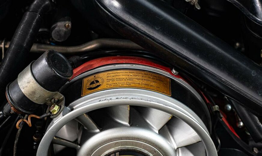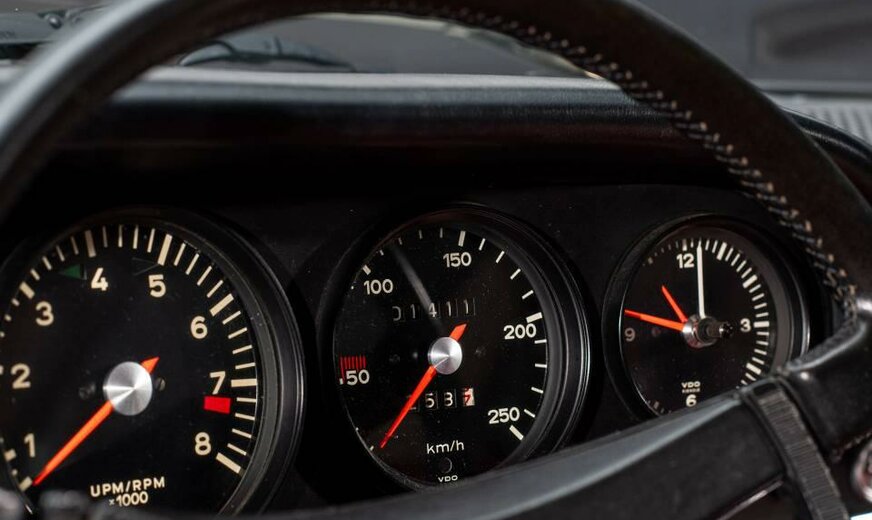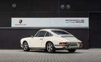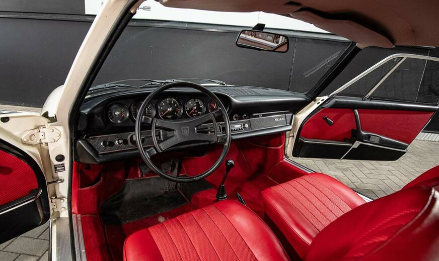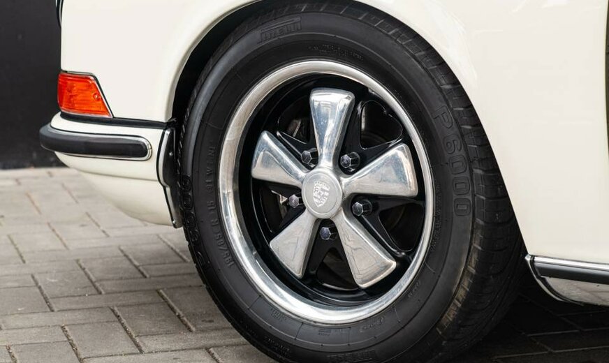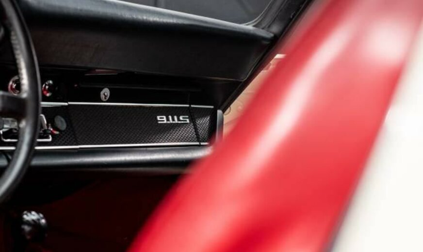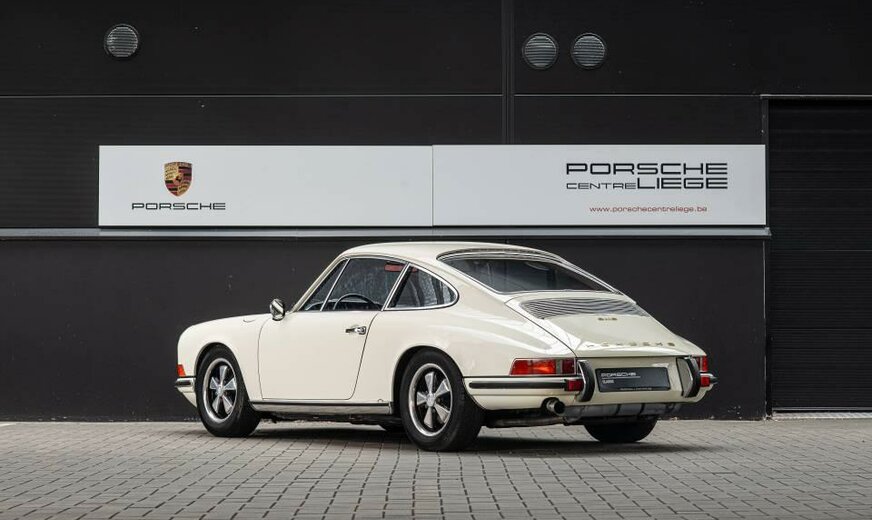 Matching numbers Wagen geïmporteerd uit Frankrijk Wagen volledig gerestaureerd in 2008 en heeft sindsdien ongeveer 25.000 km gelopen. Naast de grote ontwikkeling waarbij de wielbasis van de 911 in het modeljaar 1969 werd verlengd, waren er de gelamineerde voorruit, de verwarmde achterruit en het nieuwe verwarmingssysteem. De S-versie werd uitgerust met mechanische Bosch brandstofinspuiting, wat hem een extra 10 pk opleverde. 10 pk opleverde. Hij ontwikkelt nu 170 pk bij 6.800 t/min en 18,5 Mkg bij 5.500 t/min. (een volumeverhouding van 9,9:1). De prestaties zijn iets verbeterd, met een topsnelheid van 225 km/u. De andere belangrijke belangrijke ontwikkeling in augustus 1968 (B-serie, modeljaar 1969) betrof de wielbasis van alle Porsche 911`s en Porsche 912`s met 57 mm verlengd om het rijgedrag van de auto beter in balans te brengen. die te overstuurd werd geacht ... De Fuchs velgen werden vervangen door 6×15 en de voorspatborden werden iets verbreed om een extra olieradiator aan de rechterkant te kunnen plaatsen. radiator aan de rechterkant. Het 911S-logo op de motorkap is goudkleurig en er zijn twee kleine en twee kleine 35 Ah-accu`s werden gemonteerd in de bakken aan de voorkant van de auto. Dit model was de laatste evolutie van de 2.0S voor de overgang naar de 2.2S. Het werd alleen geproduceerd in modeljaar 1969 (1.492 exemplaren in coupévorm) en op dit model is de optie van geel die alleen verkrijgbaar waren op de Franse markt.