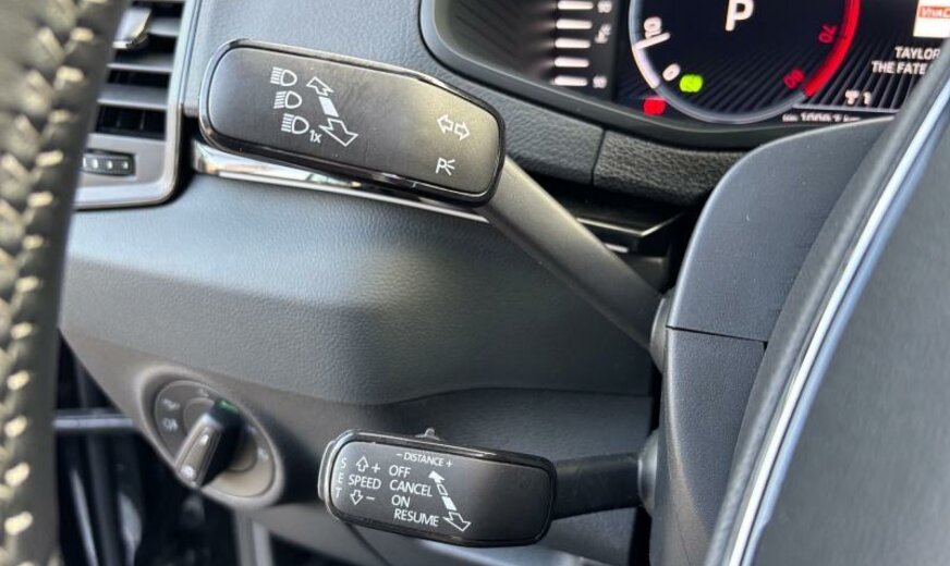 alternateur 140 A, pares-soleil éclairés, pommeau de vitesse en cuir, rétroviseurs dans la couleur du véhicule, poignées de porte dans la couleur du véhicule, ouverture et fermeture confort du hayon, filtre à air pour pays très poussiéreux, protection étendue des piétons avec prévoyance, liquide de refroidissement R1234YF, enjoliveurs cadre vitre noir, pare-brise athermique, 8 haut-parleurs, gicleurs lave-glace chauffants, système lave-phares, prise de courant 230 V, accoudoir av, commande de vitesse au volant, plancher de chargement modulable, grille de protection du radiateur avec moulures chromées de type 2, enjoliveurs bas de caisse, avertisseur d\\\'oubli du port des ceintures av/ar, Active Info Display, monogramme noir brillant, 1498 cc 1,5 L 110 KW, 7 vitesses DSG, réservoir à charbon actif EVAP , roues av motrices traction , Front Assist avec freinage d\\\'urgence City, assistant éclairage dynamique, caméra frontale pour assistant à la conduite, JANTES 8 J X 19 ALU, ENJOLIVEURS ROUE 19\\\", interface téléphonique Comfort, radio avec récepteur numérique, assistant de trajectoire avec assistant de files, airbag pour les genoux, entretien à intervalle flexible Long Life QI6, galerie de pavillon noir brillant, sélection du profil de conduite, becquet ar