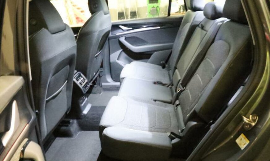filets de rangement, alternateur 180 A, sécurité enfants électrique, liquide de refroidissement R1234YF, chauffage supplémentaire à air électrique, système de chargement sans fil pour Smartphone, services Online, Infotainment 12.9\\, plancher de chargement surélevé, insonorisation capot moteur, avertisseur d\\'oubli du port des ceintures av/ar, 1968 cc 2,0 L 110 KW, traitement des gaz d\\'échappement avec catalyseur SCR, 7 vitesses DSG, Front Assist, caméra frontale pour assistant à la conduite, 7,5 J x 18 Alu, radio avec récepteur numérique, assistant de trajectoire avec assistant de files, entretien à intervalle flexible Long Life QI6, code régional \\ECE\\ pour la radio, galerie de pavillon, sièges au 3-ème rang, freins à disque ar 310x22