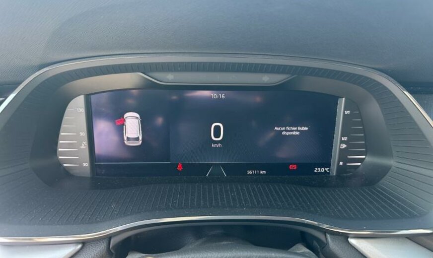 pares-soleil éclairés, système audio, système lave-phares, essuie-lunette ar, prise de courant 230 V, siège avg réglable en hauteur, siège avd réglable en hauteur, dossiers ar séparés avec accoudoir central, levier de vitesse en cuir, indicateur multifonctions FPK, enjoliveurs vitres latérales chromés, pré-équipement pour attache-remorque, fixation siège enfant av/ar, radio avec récepteur numérique, galerie de pavillon en aluminium, caméra av système d\\\'assistance à la conduite , 999 cc 1,0 L 81 KW, Front Assist, 3-ème appui-tête arrière, 7 J x 16 Alu, roue de secours acier, freins av 288x25, services Online, Style, airbag pour les genoux, réservoir à charbon actif EVAP , vide-poches dans le coffre, becquet ar seulement pour Berline , entretien à intervalle flexible Long Life QI6