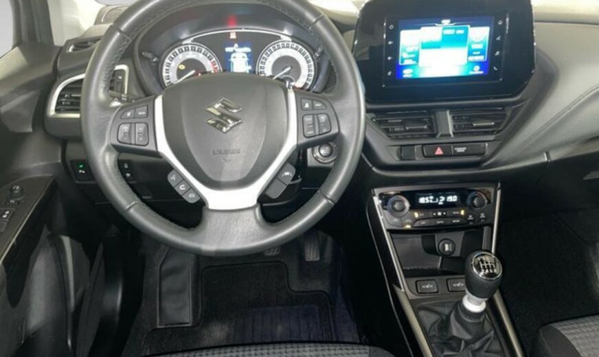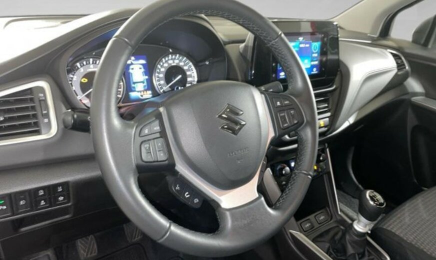 Suzuki SX4 Informations générales Marque: Suzuki Modèle: SX4 S-Cross Type: 1.4 Grand Luxe 48V Hybrid Forme de carrosserie: Crossover Code du modèle: - Numéro de référence: 56535 Numéro d'immatriculation: 56535 Informations techniques Couple: 230 Nm Commande: Traction avant Réservoir de carburant: 47 litres Vitesse de pointe: 190 km/h Mesures Dimensions (LxlxH): 430 x 178 x 158 cm Empattement: 260 cm Poids Poids à vide: 1.180 kg Capacité de charge: 605 kg PBV: 1.785 kg Poids de traction max.: 1.200 kg (non freiné 400 kg) Environnement Label énergétique: B Consommation Consommation moyenne de carburant: 4,6 l/100km Consommation de carburant en milieu urbain: 5,2 l/100km Consommation de carburant en milieu extra-urbain: 4,2 l/100km Garantie Garantie: Autopolis Occasion (€0) Garantie: 12 mois Paquets de livraison Emballage de livraison inclus: Autopolis Occasion (€0) Cet emballage de livraison contient: Autopolis Occasion (€0) (12 mois de garantie) SUZUKI SX4 S-CROSS 129CV Moteur: 1.4L avec 4 cylindres en ligne Transmission : MANUELLE 6 RAPPORTS Verrouillage centralisé à distance  Régulateur de vitesse adaptatif Assistant au freiange d\'urgence Reconnaissance des panneaux routiers Aide au maintien de voie Avertisseur angles morts Android Auto Apple Carplay Bluetooth Caméra de recul Capteur à l\'avant et à l\'arrière du véhicule Sièges chauffant Isofix Véhicule non fumeur Nous parlons français We speak english Wir sprechen Deutsch Noi parlamo Italiano Falamos Português Govorimo Srpsko Hrvatski Sous réserve d\'erreur dans l\'annonce Reprise de votre véhicule possible Financement possible sur place: financement Crédit Classique ou Crédit Ballon Eco taxe France non inclus