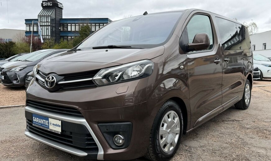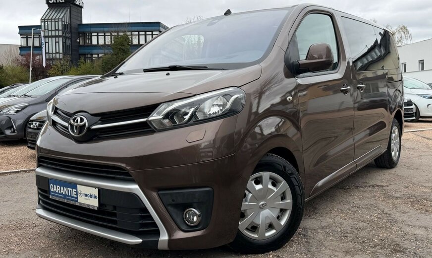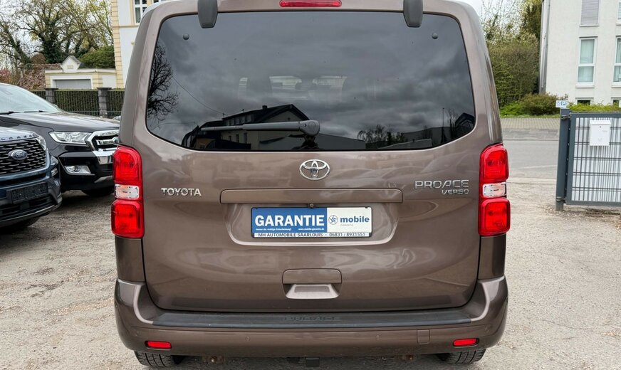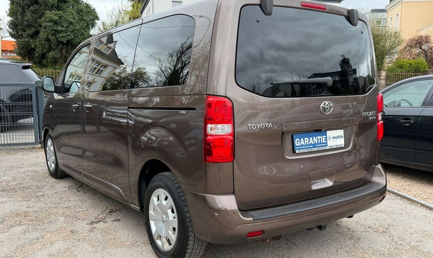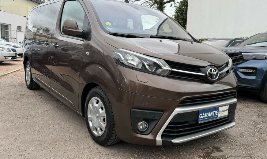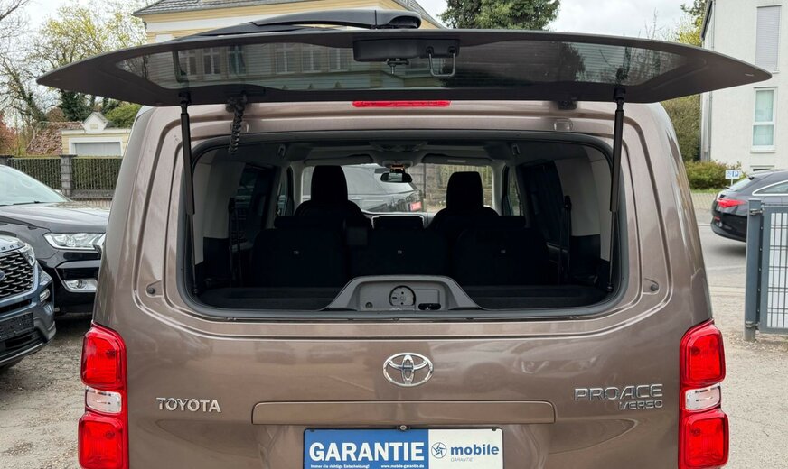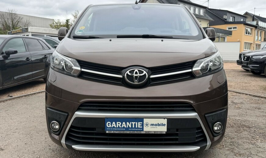 2.Sitzreihe mit Sitzbank geteilt/klappbar, 3. Bremsleuchte, 3.Sitzreihe mit Sitzbank geteilt/klappbar, Airbag Beifahrerseite abschaltbar, Airbag Fahrer-/Beifahrerseite, Audiobedienung am Lenkrad, Audiosystem: Multimedia Toyota Pro Touch, Automatische Stabilitäts-Control und Traktion (ASC + T), Außenspiegel elektr. verstell-, heiz- und anklappbar, Beifahrereinzelsitz, Bordcomputer, Bremsassistent, Chromeinfassung für Nebelscheinwerfer, Einparkhilfe vorn und hinten, Einschaltautomatik für Fahrlicht, Elektr. Bremskraftverteilung, Fahrassistenz-System: Berganfahrkontrolle (HAC), Fahrassistenz-System: Totwinkel-Assistent (BLIS), Frontscheibe Verbundglas, Gepäckraum-Abtrennung (Netz), Gepäckraumabdeckung / Rollo, Gepäcksicherungsnetz, Heckklappe mit Verglasung, Heckscheibe heizbar, Heckscheibenwischer, Innenausstattung: Aluminium eloxiert, braun, Innenspiegel mit Abblendautomatik, Isofix-Kindersitz-System, Karosserie/Aufbau: Kombi, Klapptische in Fahrer- und Beifahrersitzlehne integriert, Klimaautomatik 2-Zonen, Kopf-Airbag-System, Kopfstützen hinten, Lenksäule (Lenkrad) verstellbar, Leseleuchte, Motor 2,0 Ltr. - 110 kW D-4D KAT, Radstand 3275 mm, Reifendruck-Kontrollsystem, Reserverad in Fahrbereifung, Rückfahrkamera, Schadstoffarm nach Abgasnorm Euro 6, Schiebetür links mit Verglasung, Schiebetür rechts mit Verglasung, Schwellerabdeckung / -verkleidung Wagenfarbe, Seitenairbag hinten, Seitenairbag vorn, Sitz vorn links höhenverstellbar, Sitzausstattung: 8-Sitzer, Sitzheizung vorn, Sonnenschutzrollo an Seitenscheiben hinten, Stop&Go-System (TSGS), Stoßfänger mit Chromeinlage, Türgriffe außen verchromt, Wärmeschutzverglasung getönt