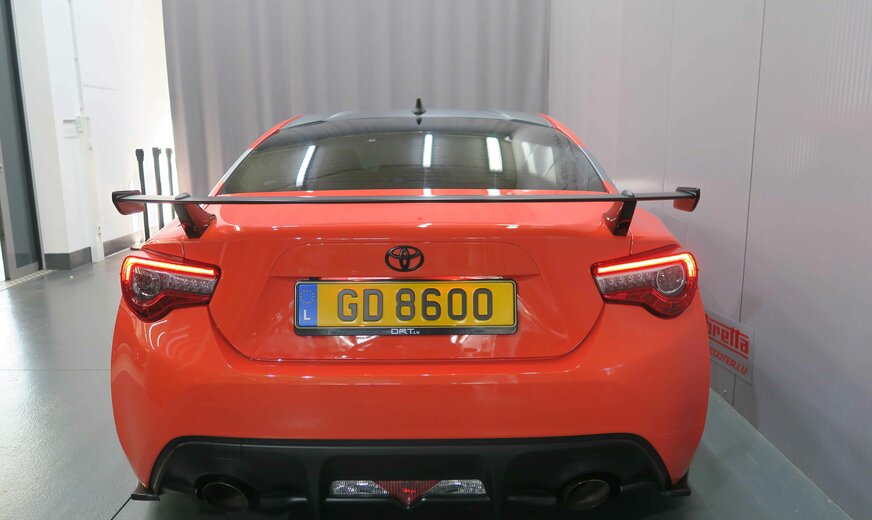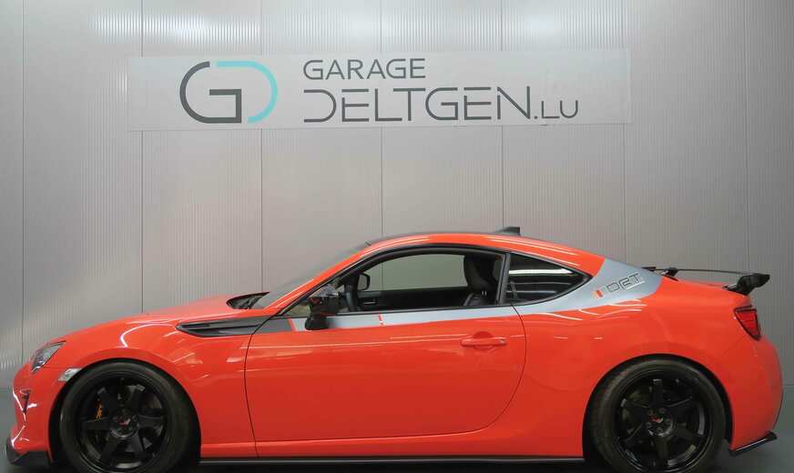 Toyota GT86 !!! NOTRE STOCK COMPLET SUR https://deltgen.lu/deltgen-cars !!! VOITURE DISPONIBLE ET LIVRABLE DE SUITE TOYOTA GT86 Finition : Orange Ltd Edition DRT PERFORMANCE PACK : -Compressor HKS â Stage 1 & Oil Cooler -Jantes JR-3 18ââ Flate Black -Freins avant SportTech -Amortisseur Capot Lift -Vitres arrière teintées -Toit noir mat -Jupes arrière et latérales -Suspensions réglables HKS -Barre anti-rapprochement AV&AR en carbone -Bras de suspension White Line -Echappement Race Cat Collecteur -Echappement Milltech -Volant Sport DRT Toutes les modifications sont inscrites sur la carte grise et 100% légales SECURITE ET MOTRICITE : -ABS Anti-Brake System -EBD Electronic Brake Distribution -BA Brake Assist -VSC Contrôle de stabilité -TRC Contrôle de antipatinage -HAC Hill Assist Contol -EBS Emergency Brake Signal -Différentiel central avec glissement limité (Torsen LSD) -Appuie-têtes actifs à lâavant -Boite manuelle à 6 vitesses -7 Airbags EXTERIEUR : -Pare brise teinté et laminé -Pare-chocs & poignées de portes en couleur carrosserie -Rétroviseurs en couleur noir -Rétroviseurs extérieurs électriques, chauffants et rabattables -Pot dâéchappement à bouts chômé -Spoiler de coffre arrière -Phares Xenon -Phares antibrouillard -Caméra de recul -Spoiler arrière noir INTERIEUR Et CONFORT : -Climatisation automatique Bi-Zone -Vitres électriques -Smart Entry & Start -Direction assistée électrique -Régulateur de vitesse -Volant & pommeau de vitesse en cuir -Volant réglable en hauteur et en profondeur AUDIO ET INFORMATION : -JBL Premium Sound System -Système de Navigation -Antenne âaileron de requinâ -Toyota Touch avec caméra de recul -Bluetooth -AUX & USB -Commandes audio au volant -Compte-tours SIEGES : -4 places -Revêtement des sièges en Cuir / Alcantara avec surpiqures oranges -Sièges sport -Appuie-tête réglables en hauteur -Siège conducteur réglable en hauteur -Accoudoir central avant Garantie 12 mois Pour plus de renseignement ou un essai n'hésitez pas à contacter notre service vente: PAULO DA SILVA Tél.: +352 81 82 04-24 WhatsApp / Facetime: +352 621 818 215 sales@deltgen.lu Garage Deltgen à Ettelbrück Votre partenaire au Luxembourg pour les marques Toyota et Mazda Occasions garanties toutes marques *sauf erreurs ou omissions