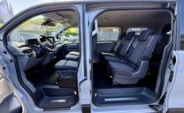 * Banquette double pour passagers avant avec trappe de chargement et tablette escamotable