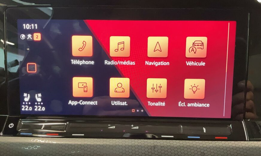 H7H7 Atlantic Blue Métallisé \r\nUG Noir Soul - Rouge Tornade/Noir Soul/ Noir/Noir Sou \r\nPDD Régulation adaptative des trains roulants DCC \r\nPF5 Pack IQ.DRIVE y compris pilotage semi-automatique du véhicule en cas d\\\'urgence médicale Emergency Assist \r\nPJ6 \\\"Richmond\\\" 7,5J x 18, pneus 225/40 R18 \r\nPLA Pack Éclairage et Visibilité \r\nPXD IQ.LIGHT - projecteurs Matrix LED \r\nRBD Système de navigation \\\"Discover Media\\\" y compris \\\"Streaming Internet\\\" \r\nWL2 Pack Cuir \\\"Vienna\\\" y compris sièges sport haut de gamme avant avec climatisation active \r\nYOS Préparé pour \\\"We Connect\\\" et \\\"We Connect Plus\\\" \r\n4KF Glaces latérales arrière et lunette arrière assombries \r\nKH7 Clim. \\\"Air Care Climatronic\\\" ac filtre comb. à charbon actif, éléments de cmde à l\\\'AR et régulation de temp. 3 zones \r\nQH1 Commande vocale \r\nQV3 Réception de radio numérique DAB+ \r\n79H Assistant de changement de voie Side Assist, assist. sortie de stationnement et alerte de sortie du véhicule \r\n8WK Projecteurs antibrouillard et feux de braquage \r\nKA2 Caméra de recul Rear View