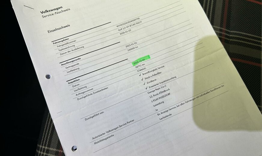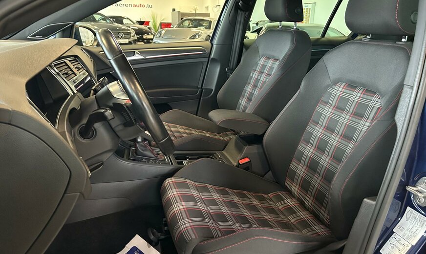 VW Golf Sonderausstattung: Business-Paket Premium mit Navigation, Fahrassistenz-System: Blind Spot Sensor mit Auspark-Assistent, Metallic-Lackierung, Mobiltelefon Schnittstelle Comfort mit kabelloser Ladefunktion, Navigationsmodul Discover Media (für Audiosystem), Rückfahrkamera (Rear View), Sound-System DYNAUDIO, Spiegel-Paket, Verglasung hinten abgedunkelt (65 %) Weitere Ausstattung: 3-Punkt-Sicherheitsgurt hinten mitte, Abbiegelicht, Abgasanlage Performance, Active Info-Display (Instrumentenanzeige digital), Airbag Beifahrerseite abschaltbar, Airbag Fahrer-/Beifahrerseite, Ambiente-Beleuchtung, Antriebs-Schlupfregelung (ASR), Audiosystem Composition Media (Touchscreen, Radio/CD-Player, MP3, Bluetooth), Ausstattung GTI, Auto-Hold-Funktion, Automatische Fahrlichtschaltung (ALS) mit Leaving Home / Coming-Home-Lichtfunktion, AuÃenspiegel asphärisch, links, AuÃenspiegel elektr. verstell- und heizbar, AuÃenspiegel konvex, rechts, AuÃenspiegel lackiert, AuÃenspiegel mit autom. Absenkfunktion, rechts, Blinkleuchte in AuÃenspiegel integriert, Bremsassistent, Bremssättel Rot lackiert, Chrom-Paket 2, Dachhimmel Stoff, schwarz, Dachspoiler, Differentialsperre (Vorderachse), Doppeltonhorn, Durchladeeinrichtung (Mittelarmlehne hinten), Einparkhilfe vorn und hinten, Einstiegsleisten vorn beleuchtet, Elektron. Differentialsperre (EDS), Elektron. Differentialsperre (XDS), Fahrassistenz-System: Anhänger-Stabilisierungs-Programm, Fahrassistenz-System: Müdigkeitserkennung, Fahrassistenz-System: Umfeldbeobachtungssystem (Front assist) mit City-Notbremsfunktion, Frontscheibe Verbundglas getönt, Funkschlüssel (2) klappbar, FuÃmatten Textil, Handschuhfach mit Kühlfunktion, Heckleuchten LED, dunkelrot, Blinkleuchten dynamisch, Heckscheibenwischer, Innenausstattung: Dekoreinlagen Honeycomb Black, Innenspiegel mit Abblendautomatik, Isofix-Aufnahmen für Kindersitz an Rücksitz, Karosserie: 5-türig, Klimaanlage Climatronic 2-Zonen, Knieairbag Fahrerseite, Kopf-Airbag-System vorn und hinten inkl. Seitenairbag vorn, Kopfstützen hinten (3-fach), Lautsprecher (8), Lendenwirbelstütze Sitz vorn rechts, Lenkrad (Sport/Leder) mit Multifunktion und Schaltfunktion, Lenksäule (Lenkrad) mechan. verstellbar, Höhen-/Längsverstellung, Leseleuchten vorn und hinten LED, Mobile Online Dienste VW Connect, Modellpflege, Motor 2,0 Ltr. - 180 kW TSI, Multifunktionsanzeige Premium (Farbdisplay), Nebelschlussleuchte, Notrufsystem, Otto-Partikelfilter (OPF), Parkbremse elektrisch, Pedale Edelstahl, Progressivlenkung, Reifen-Reparaturkit (Tire Mobility Set), Reifenkontroll-Anzeige, Rücksitzlehne geteilt, Schadstoffarm nach Abgasnorm Euro 6d-TEMP, Schalt-/Wählhebelgriff Aluminium, Scheinwerfer LED, Sicherheitsgurte vorn mit Gurtstraffer, höhenverstellbar, Sitz vorn links höhenverstellbar, Sitz vorn rechts höhenverstellbar, Sitzbezug / Polsterung: Stoff, Sitze: Top-Sportsitze vorn, Stabilisator vorn, Start/Stop-Anlage, Steckdose 12V im Koffer-/Laderaum, StoÃfänger Sport-Design, lackiert, Türgriffe auÃen Wagenfarbe, Warnanlage für Sicherheitsgurte vorn