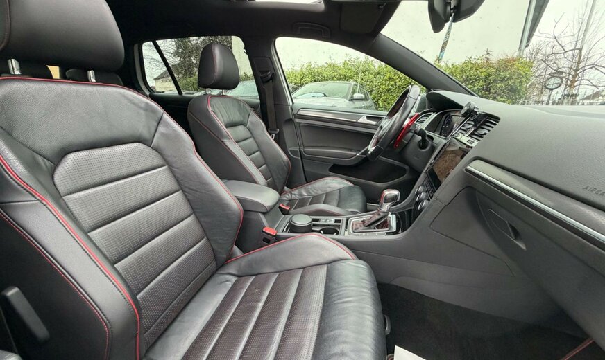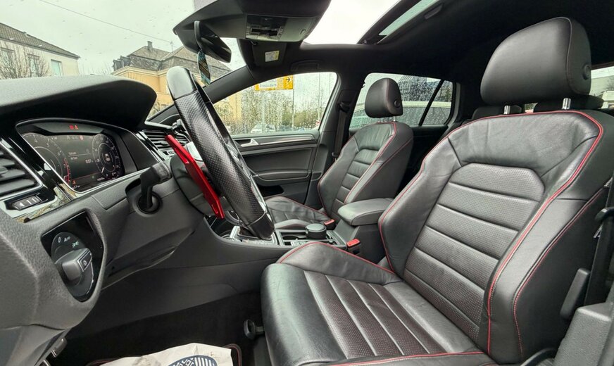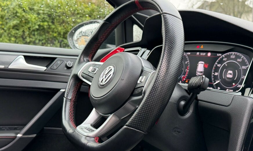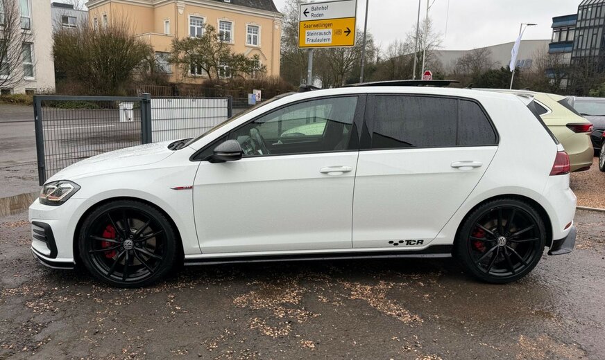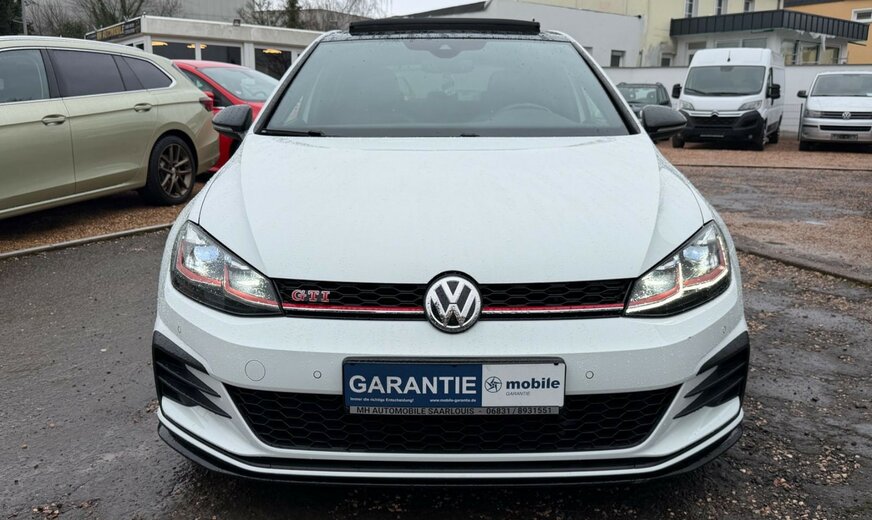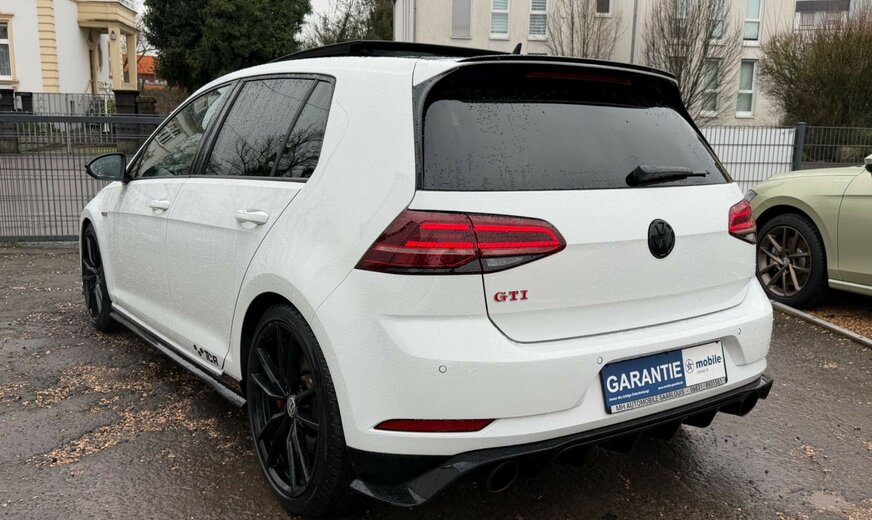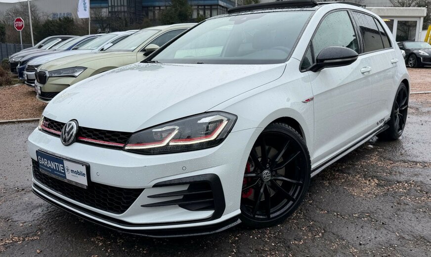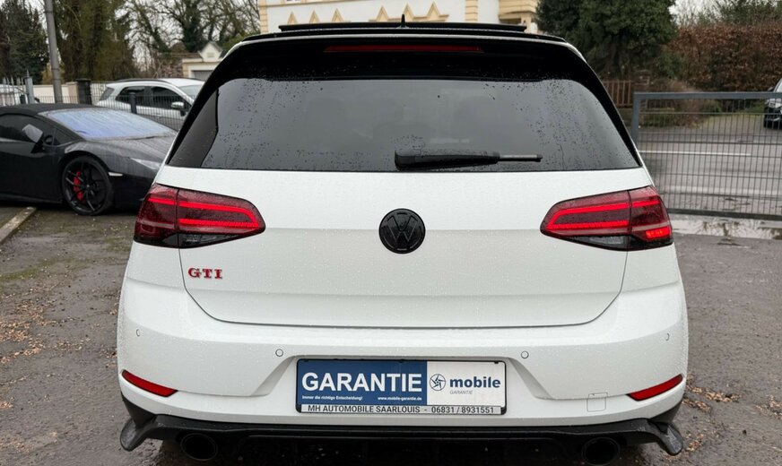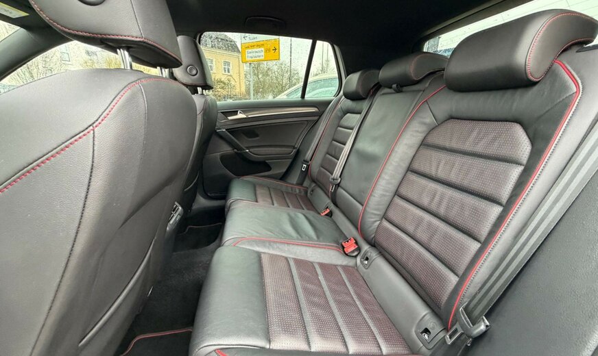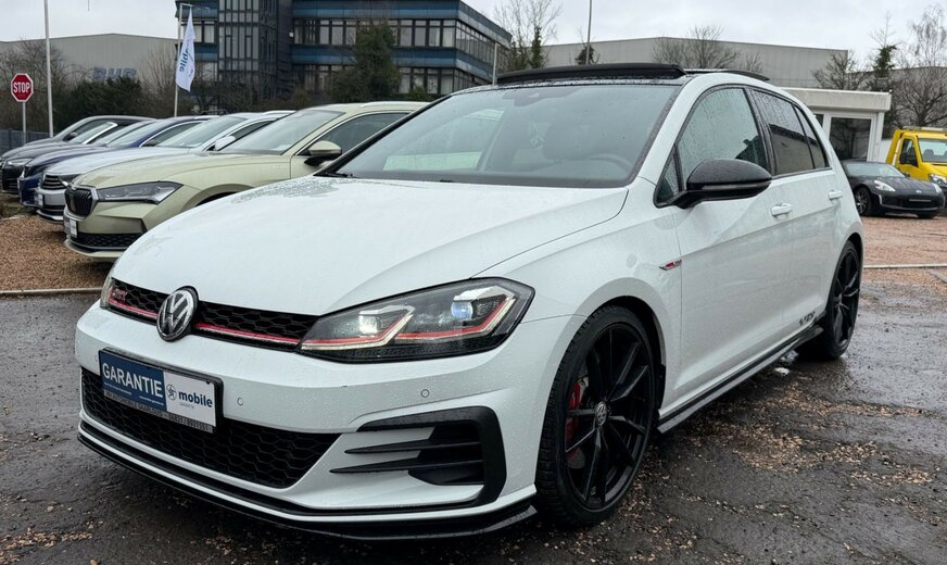 3-Punkt-Sicherheitsgurt hinten mitte, Abbiegelicht, Active Info-Display (Instrumentenanzeige digital), Airbag Beifahrerseite abschaltbar, Airbag Fahrer-/Beifahrerseite, Ambiente-Beleuchtung, Antriebs-Schlupfregelung (ASR), Ausstattung GTI, Auto-Hold-Funktion, Automatische Fahrlichtschaltung (ALS) mit Leaving Home / Coming-Home-Lichtfunktion, AuÃenspiegel asphärisch, links, AuÃenspiegel elektr. verstell- und heizbar, AuÃenspiegel konvex, rechts, AuÃenspiegel mit autom. Absenkfunktion, rechts, AuÃenspiegel schwarz lackiert, Blinkleuchte in AuÃenspiegel integriert, Bremsassistent, Bremssättel Rot lackiert, Chrom-Paket 2, Dachhimmel Stoff, schwarz, Dachspoiler, Differentialsperre (Vorderachse), Doppeltonhorn, Durchladeeinrichtung (Mittelarmlehne hinten), Einparkhilfe vorn und hinten, Einstiegsleisten vorn beleuchtet, Elektron. Differentialsperre (EDS), Elektron. Differentialsperre (XDS), Fahrassistenz-System: Anhänger-Stabilisierungs-Programm, Fahrassistenz-System: Müdigkeitserkennung, Fahrassistenz-System: Umfeldbeobachtungssystem (Front assist) mit City-Notbremsfunktion, Frontscheibe Verbundglas getönt, Funkschlüssel (2) klappbar, FuÃmatten Textil, Handschuhfach mit Kühlfunktion, Heckleuchten LED, dunkelrot, Blinkleuchten dynamisch, Heckscheibenwischer, Innenausstattung: Dekoreinlagen Honeycomb Black, Innenspiegel mit Abblendautomatik, Isofix-Aufnahmen für Kindersitz an Rücksitz, Karosserie: 5-türig, Klimaanlage Climatronic 2-Zonen, Knieairbag Fahrerseite, Kopf-Airbag-System vorn und hinten inkl. Seitenairbag vorn, Kopfstützen hinten (3-fach), Lautsprecher (8), Lendenwirbelstütze Sitz vorn links, Lendenwirbelstütze Sitz vorn rechts, Lenkrad (Sport/Leder - TCR) mit Multifunktion und Schaltfunktion, Lenksäule (Lenkrad) mechan. verstellbar, Höhen-/Längsverstellung, Leseleuchten vorn und hinten LED, LM-Felgen, Modellpflege, Motor 2,0 Ltr. - 213 kW 16V TSI, Multifunktionsanzeige Premium (Farbdisplay), Nebelschlussleuchte, Nichtraucher-Paket, Notrufsystem, Otto-Partikelfilter (OPF), Parkbremse elektrisch, Pedale Edelstahl, Progressivlenkung, Reifen-Reparaturkit (Tire Mobility Set), Reifenkontroll-Anzeige, Rücksitzlehne geteilt, Schadstoffarm nach Abgasnorm Euro 6d-TEMP, Schalt-/Wählhebelgriff Aluminium, Scheinwerfer LED, Sicherheitsgurte vorn mit Gurtstraffer, höhenverstellbar, Sitz vorn links höhenverstellbar, Sitz vorn rechts höhenverstellbar, Sitze: Top-Sportsitze vorn, Stabilisator vorn, Start/Stop-Anlage, Steckdose 12V im Koffer-/Laderaum, StoÃfänger Sport-Design, lackiert, Türgriffe auÃen Wagenfarbe, Warnanlage für Sicherheitsgurte vorn