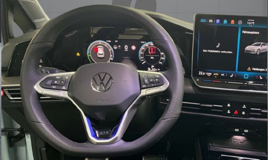 VW Golf Volkswagen Golf 8 GTE 272ch DSG (Phase 2) Mise en circulation : 06/2025 Kilométrage : 11 900 km Garantie CONSTRUCTEUR 06/2030 TVA récupérable Options principales : •Pack Design Black Style avec projecteurs IQ.LIGHT Matrix LED •Toit ouvrant panoramique coulissant/relevable •Suspension pilotée DCC avec sélection du profil de conduite •Pack Assistance avec Side Assist •Park Assist Pro avec aide au stationnement •Système de vision périmétrique Area View avec caméra de recul •Affichage tête haute •Navigation avec écran 12,9 pouces •Volant sport cuir chauffant avec palettes •Attelage escamotable électriquement Équipements : •Jantes alliage 18” Catania noir finition brillante •Vitres arrière surteintées •Accès et démarrage sans clé Keyless Access •Rétroviseur intérieur électrochrome •Rétroviseurs extérieurs rabattables électriquement avec mémoire •Éclairage d’ambiance 30 couleurs •Digital Cockpit Pro •Car2X •Assistant vocal IDA •Système audio 6+1 haut-parleurs •Radio numérique DAB+ •App-Connect Wireless (Apple CarPlay & Android Auto) •Recharge smartphone par induction Sécurité et aides à la conduite : •Travel Assist avec conduite semi-autonome •Lane Assist •Emergency Assist •Side Assist (angle mort) •Front Assist avec détection piétons et cyclistes •Protection proactive des occupants •Reconnaissance des panneaux de signalisation •Régulateur de distance adaptatif ACC •Dynamic Light Assist (feux de route automatiques) •Détecteur de pluie •Alarme antivol Motorisation : •Hybride rechargeable •1.5 TSI + moteur électrique •Puissance système : 272 ch •Boîte DSG 6 rapports