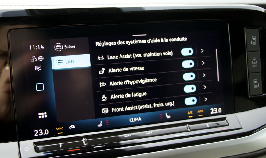 * IQ.LIGHT â projecteurs LED Matrix avec feux de jour à LED, gestion dynamique des feux de route « Dynamic Light Assist », réglage dynamique de la portée des phares avec éclairage dynamique en virage, feux tout temps incluant éclairage d'angle,
