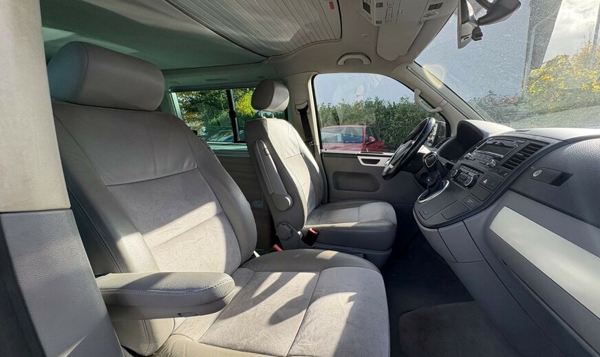 Airbag Fahrer-/Beifahrerseite, Anbauteile in Wagenfarbe lackiert, Armaturentafel Komfort, Audiosystem RCD 310 (Radio/CD-Player mit MP3-Wiedergabefunktion), Ausführung: California, AuÃenspiegel asphärisch, links, AuÃenspiegel elektr. verstell-, heiz- und anklappbar, AuÃenspiegel konvex, rechts, Befestigungsschienen für Dachträger, Betriebsschalter 12V und 230V Wechselrichter, Campingtisch, Doppeltonfanfare, Fahrassistenz-System: Bremsassistent (HBA), Fahrradträger für Heckklappe, Fenster im Lade-/FG-Raum: Doppelverglasung, grün getönt, Heckklappe mit Verglasung, Heckscheibe heizbar, mit Wischanlage, Innenausstattung: Dekoreinlagen Aluminium, Innenleuchten im Fahrerhaus: Leseleuchten vorn (2), Innenraumfilter: Pollenfilter, Isofix-Aufnahmen für Kindersitz an Rücksitz, Karosserie/Aufbau: Motor Caravan, Karosserievariante: Aufstelldach, Kindersicherung an den Schiebetüren, Kühlbox / Warmhaltebox, LM-Felgen, Make-up-Spiegel links beleuchtet, Make-up-Spiegel rechts beleuchtet, Motor 2,0 Ltr. - 132 kW TDI, Radstand 3000 mm, Reifendruck-Kontrollsystem, Scheibenwaschdüsen beheizt und Anzeige für Waschwasserstand, Scheinwerfer H7, Schiebetür Lade-/Fahrgastraum links entfällt, Schiebetür Lade-/Fahrgastraum rechts, Seitenairbag / Kopfairbag (Curtain-Airbag) vorn, Servoschliessung Heckklappe, Sitze im Fahrerhaus: Fahrer- und Beifahrersitz heizbar, Sitze im Lade-/FG-Raum: 2.Reihe, 2er-Sitzbank, verschiebbar und ausklappbar, Standheizung mit Fernbedienung und Zeitschaltuhr, StoÃfänger lackiert, Verglasung hinten abgedunkelt, Wärmeschutzverglasung, Zul. Gesamtgewicht 3,08 t, Zuziehhilfe für Heckklappe, Zuziehhilfe Schiebetür rechts