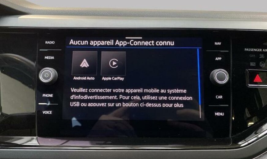 réservoir à charbon actif EVAP , radio AM/FM, rétroviseurs avec lampes de projection, caméra av, Infotainment-System MIB3 , 6 haut-parleurs, services Online, réglage hauteur phares automatique, sièges av réglables en hauteur, plancher de chargement modulable, garniture pavillon noir, avertisseur d\\\'oubli du port des ceintures av/ar, radio avec récepteur numérique, pack Chrome Type 2 , indicateur multifonctions LCD, pédalier Sport, alternateur 140 A, 999 cc 1,0 L 85 KW, ceintures de sécurité ar avec prétensionneurs, Front Assist/freinage d\\\'urgence City, sélection du profil de conduite Drive Select , 6,5 J x 17 Alu \\\"Valencia\\\", kit réparation pneus, protection étendue des piétons avec prévoyance, galerie de pavillon noire, boulons de roue avec antivol, grille de calandre éclairée, freins à disque ar 230x9, R-Line, entretien à intervalle flexible Long Life QI6, freins à disque av 276x24