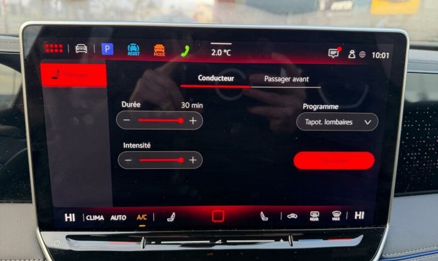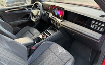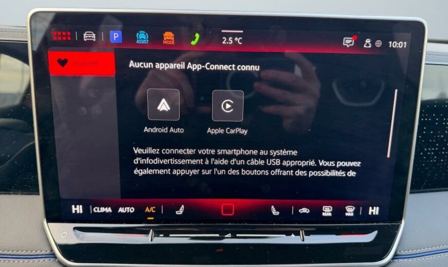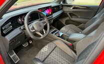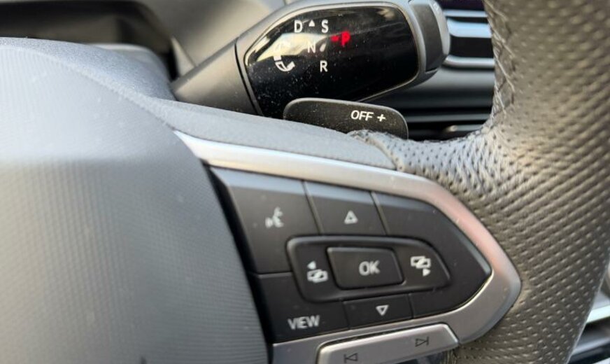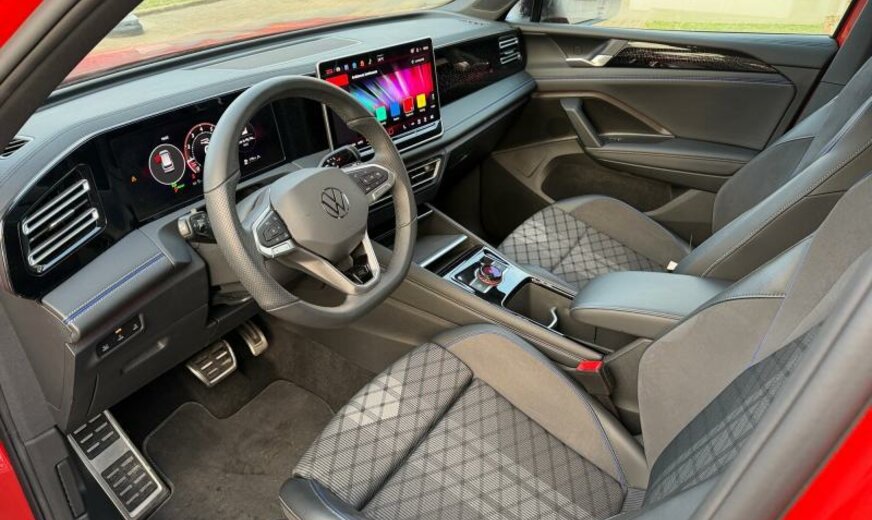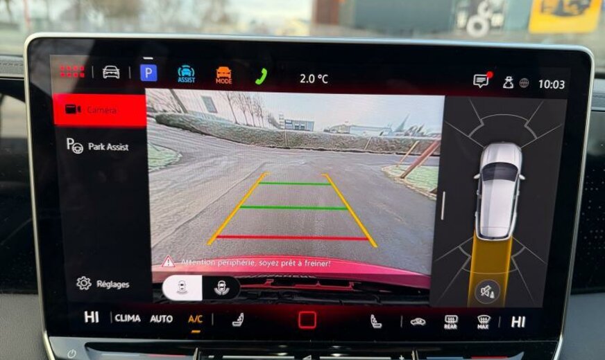 ceintures de sécurité avant avec prétensionneurs et tensionneur final, enjoliveurs des vitres latérales noirs, pièces de décoration intérieure chromées, variante Car2X High, radio avec récepteur numérique, siège avg avec réglage en inclinaison et en profondeur, dossiers ar rabattable avec cmde du coffre, appuis lombaires av réglables pneumatique, sièges sport, fixation siège enfant av/ar, liseré intermédiaire des phares/poignées de porte éclairées, pédalier Sport, 1498 cc 1,5 L 110 KW, 7 vitesses DSG, roues av motrices traction , assistant de croisement, réservoir à charbon actif EVAP , régulation de la distance automatique, caméra frontale pour assistant à la conduite, Front Assist avec freinage d\\\'urgence ar pour piétons, 255/40 R 20 ..V, 8,5 J x 20 Alu \\\"York\\\" noir, entretien à intervalle flexible Long Life QI6, boulons de roue avec antivol, airbag central entre les sièges av, ceintures de sécurité ar avec prétensionneurs, galerie de pavillon noire, sélection du profil de conduite, transmission hybride M-HEV, R-Line, R-Line Black Style, 2 couches nacrée