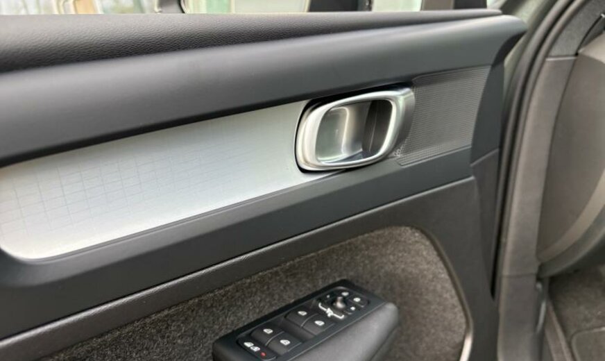 Volvo XC40 rétroviseurs jour/nuit automatique, Blind Spot Information System, grille de calandre active Shutter-System, système audio High Performance, sécurité enfants électrique, ceintures de sécurité de type B, ceintures de sécurité à avance électrique ERR, poignées de portes éclairées, moulures de vitres standard, pare-chocs av/ar Type Momentum, ouverture du hayon à mains libres de génération 2, sigle chauffant, roues av motrices traction , airbag pour les genoux, 7,5 J x 19 Alu 5 branches Diamond cut noir, 7,5 J x 18 Alu 10 branches, galerie de pavillon, sortie d'échappement double cachée, Radar Argus, Thaïlande, 1969 cc 2,0 L 120 KW essence / 10 KW électrique B3 , pare-chocs av livré peint