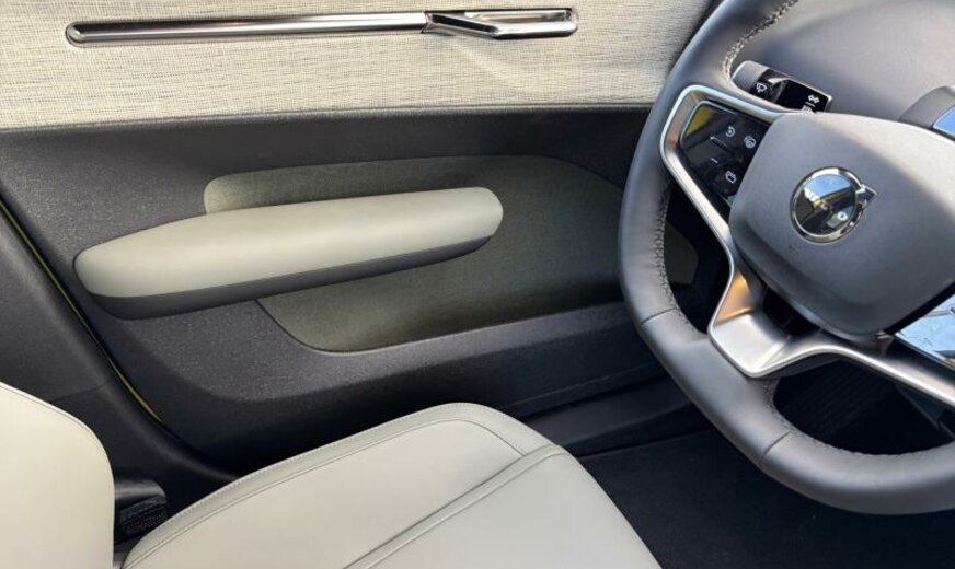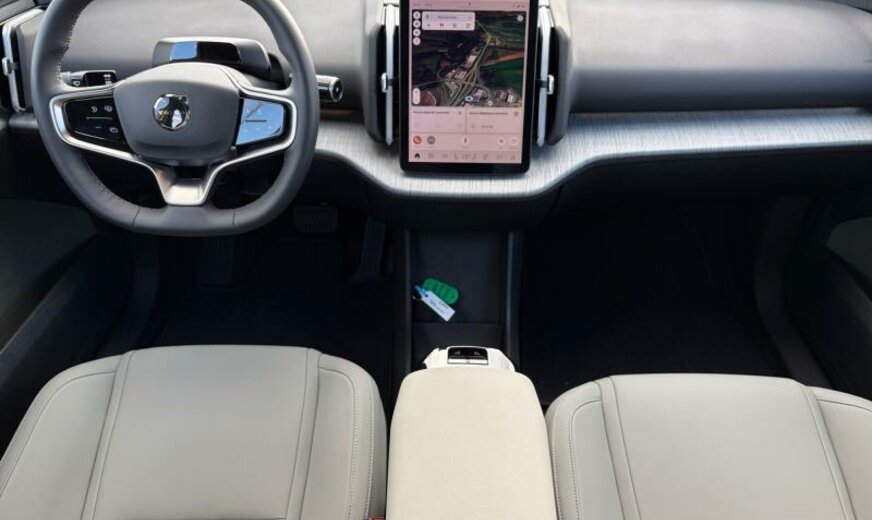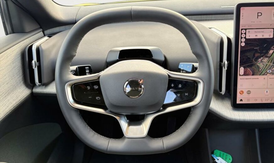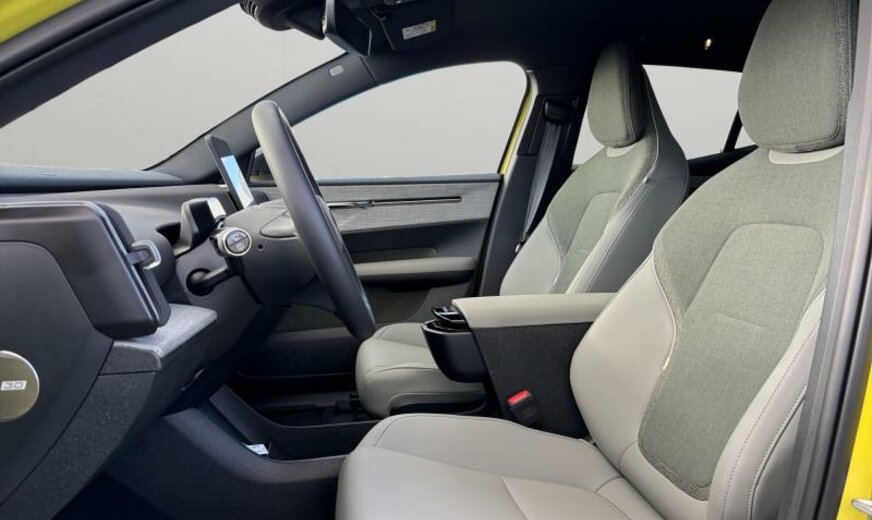 pare brise vert, AIR QUALITY SYSTEM, rétroviseurs avec éclairage bas de porte, RETROVIS ASPHERIQUE, rétroviseurs jour/nuit automatique, téléphone Volvo On Call, CAPT POSIT SIEGE AV, Tailored Wool gris clair, écrans ar cadre pavillon noir, grille entrée d\\\'air active \\\"AGS Low\\\", CEINT AR + PRETENS, moteur électrique ar 200 kW Total , 1 vitesse, ethylomètre, 8 J x 19 Alu 5 branches, batterie haute tension 69 kWh, CONNEX CHARGE RAPIDE, 2 couches mica